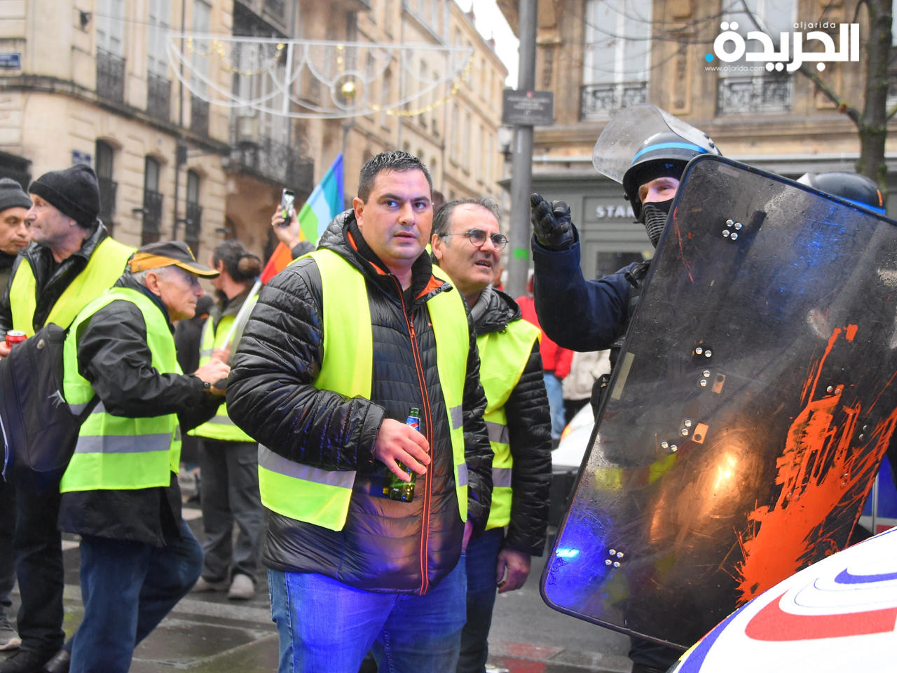 ودعا الأكثر تصميماً بين المحتجين إلى التحرك رغم إقرار البرلمان الليلة السابقة إجراءات طارئة تنصّ على ضخّ 10 مليارات يورو للتخفيف من الضغط الضريبي وتنمية القدرة الشرائية، تنفيذاً لمطالب المحتجين.لكن بعضاً من ناشطي الحركة لا يبدون جاهزين لفضّ النزاع مع الحكومة، في أسوأ أزمةٍ يشهدها عهد الرئيس إيمانويل ماكرون، تترافق مع تراجع شعبيته بحسب استطلاعات الرأي.وقال فريدريك (46 عاما) الذي تظاهر في جادة الشانزليزيه "أرى أن المشاركة جيدة قبل يومين من عيد الميلاد".وحافظ المتظاهرون في الإجمال على الهدوء ولم تسجل أعمال شغب أو عنف خلافا لما حدث في بداية الشهر.وأوقفت الشرطة في باريس أكثر من مئة شخص بينهم إريك درويه أحد متصدري التظاهرات. وفي جادة الشانزيليزيه التي كانت مركز التحركات، فتحت المطاعم والمحلات التجارية أبوابها بشكل اعتيادي. ووفق صحافية في فرانس برس، فقد هتف بعض المحتجين بعبارة "باريس إلى الشارع!"، وهم يسيرون على مقربةٍ من المحلات التجارية الكبيرة حيث كان الناس يشترون هدايا عيد الميلاد.وبين المحتجين، جان فيليب وجينيفر البليجكيان المقيمان في شمال فرنسا، جاءا للتظاهر حتى "يسقط ماكرون". وقالا إن ما "أعجبنا هو أن الاحتجاج بدأ ضدّ ضريبة الوقود وانتهى بتأكيد ضرورة تحقيق المساواة".وتفرق المتظاهرون إلى مجموعات صغيرة في شوارع باريس حيث فرقت قوات الشرطة بعضها مستخدمة الغاز المسيل للدموع.ونظمت عدة تحركات خارج العاصمة وككل يوم تم التركيز على المراكز الحدودية حيث تجمع المئات من "السترات الصفراء" عند بولو، نقطة العبور الأخيرة قبل الحدود الإسبانية شرق البيرينه، لكن الشرطة فرقتهم بالغاز المسيل للدموع بعد أن أعاقوا مرور الشاحنات لساعات.وحمل هؤلاء لافتات كتب عليها "الملك ماكرون يرمي الفتات للجائعين" و"كفى احتقاراً".وقد أزالت قوى حفظ الأمن عدداً من النقاط التي كان يتمركز فيها "السترات الصفراء" على الطرقات السريعة، مع مطالبة الحكومة بوقف هذا النوع من التحركات التي تسببت على الأرجح بمقتل 10 أشخاص، خصوصاً في حوادث سير.ولقي سائق حتفه ليل الجمعة-السبت بعدما صدم شاحنة متوقفة عند حاجز أقامه محتجو "السترات الصفراء" قرب بيرينيان (جنوب).ولوحظت كذلك صعوبة في حركة المرور على الحدود مع بلجيكا، فيما أقام نحو مائتي متظاهر حاجزاً تسبب في عرقلة السير على الطريق السريع على معبر فينتيميلي الحدودي مع إيطاليا.وفي ستراسبورغ، أغلق نحو مئة من المحتجين وهم يرتدون سترات صفراء الطريق المؤدي إلى جسر أوروبا الحدودي مع ألمانيا، قبل أن تفرقهم الشرطة.وفي بوردو، في جنوب غرب فرنسا، شارك أكثر من الفي شخص في التظاهرات مقابل 4500 السبت الماضي. وفي ليل نزل نحو ألف إلى الشارع.وتظاهر نحو مئة من "السترات الصفراء" في بروكسل بهدوء مقابل 400 إلى 500 الأسبوع الماضي وفق المتحدثة بالسم شرطة المدينة إيلسي فان دو كير.