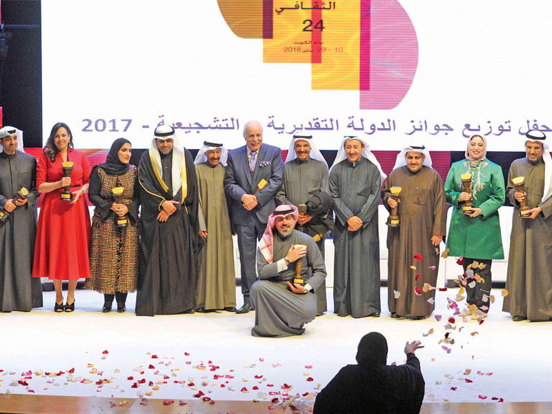 وقد كرّم المجلس ثلّة من المبدعين الفائزين في النسخة الماضية من جائزة الدولة التقديرية والتشجيعية، وهم:• وزير الإعلام الأسبق الإعلامي محمد السنعوسي، الذي فاز بجائزة الدولة التقديرية في مجال الخدمات الثقافية.• الفنان عبدالكريم عبدالقادر، الذي حصل على جائزة الدولة التقديرية في مجال الفنون.• رجل الأعمال الكويتي، مؤسس ورئيس مجلس إدارة شركة صخر للحاسب الآلي، محمد الشارخ، الذي فاز بجائزة الدولة التقديرية في مجال الاتصال الإلكتروني ذات الصلة بالثقافة والفنون.والفائزون بالجوائز التشجيعية:• الفنان زيد العبيد، فاز بجائزة الفنون التشكيلية (النحت) عن عمله "تشويه".• الفنان عبدالله التركماني حصل على جائزة الإخراج التلفزيوني عن إخراجه مسلسل "حكايات سداسيات".• الصحافية والقاصة الروائية والسيناريست منى الشمري، حصلت على جائزة القصة القصيرة عن المجموعة القصصية "رأسان تحت مظلة واحدة".• الكاتبة المسرحية تغريد الداود، فازت بجائزة النص المسرحي عن مسرحية "غصة عبور".• أستاذة اللغة الإنكليزية الأديبة هدى الشوا، جائزة أدب الطفل، عن عملها "رحلة فيل".• أستاذ اللغة الإنكليزية والمترجم د. طارق فخر الدين فاز بجائزة الترجمة عن ترجمة كتاب "رسائل من الكويت 1953 - 1955" لمؤلفه بيتر لينهارت.وذهبت جائزة الدراسات التاريخية والآثارية والمأثورات الشعبية للكويت، مناصفة بين أستاذ التاريخ الحديث والمعاصر د. حمد القحطاني، عن عمله "موقف المملكة العربية السعودية من أزمة عام 1381 هجري 1963 ميلادي بين الكويت والعراق)، وفاز معه في الجائزة الباحث في تاريخ التعليم في الكويت وفي التراث الكويتي بدر زوير عن عمله "المدرسة الأحمدية".• أستاذ علم الاجتماع في جامعة الكويت، د. علي الزعبي، حصل على جائزة علم الاجتماع في مجال العلوم الاجتماعية والإنسانية عن عمله "السياسات التنموية وتحديات الحراك السياسي في العالم العربي: حالة الكويت".• الأستاذ المساعد في المعهد العالي للفنون الموسيقية وأستاذ علم النفس التربوي فتحي القلاف، فاز بجائزة علم النفس في مجال العلوم الاجتماعية والإنسانية عن عمله "علم النفس الموسيقي".• أستاذ العلوم السياسية في جامعة الكويت، د. عبدالله سهر، حصل على جائزة العلوم السياسية في مجال العلوم الاجتماعية والإنسانية عن عمله "مستقبل حوار التعاون الآسيوي... من المنتدى إلى المنظمة".