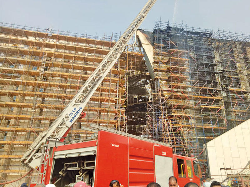 نشب حريق محدود في المتحف المصري الكبير في الشدة المعدنية والمدعمة بألواح خشبية مركبة على الواجهة الخلفية الغربية بمشروع المتحف المصري الكبير، وهو أحد المشروعات العملاقة التي تعول عليها الدولة المصرية في إنعاش السياحة والمقرر افتتاحه خلال عام 2019.وعقب الحادث ذكرت وزارة الآثار المصرية في بيان لها أن «15 سيارة إطفاء وصلت من إدارة الحماية المدنية بمحافظة الجيزة لإخماد الحريق، وكانت السيطرة على النيران بالكامل وأرسلت القوات المسلحة طائرة إطفاء لضمان سلامة المنشأة والأفراد، ولم يتعرض المبنى أو أية قطعة أثرية بالمتحف للخطر».26 أكتوبر: اكتشاف منصة احتفالات رمسيس الثاني