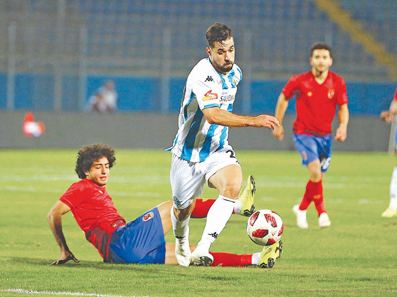 واصل الأهلي سلسلة نتائجه السيئة ببطولة الدوري المصري الممتاز، بعدما خسر أمام مضيفه بيراميدز بهدفين لهدف، في المباراة التي جمعتهما على ملعب الدفاع الجوي والمؤجلة من الأسبوع الثامن من عمر المسابقة.جاءت بداية الشوط الأول متوسطة المستوى، وسط سيطرة واستحواذ متبادل على الكرة بين الفريقين مع فاعلية أكبر من الأهلي، وفي الدقيقة 33 انطلق الوافد الجديد رمضان صبحي من الجهة اليسرى، ليمرر بينية رائعة إلى علي معلول، الذي أرسل عرضية خطيرة متقنة حوَّلها المغربي وليد أزارو بالرأس إلى شباك أحمد الشناوي حارس مرمى بيراميدز، وحاول أصحاب الأرض إدراك التعادل قبل نهاية الشوط الأول، إلا أن الحكم الصربي أطلق صافرة النهاية مع حلول الدقيقة 46.وبالشوط الثاني، نجح بيراميدز في قلب الطاولة على الفريق الأحمر، بتسجيل هدفين في 10 دقائق، حيث ضغط بقوة على دفاعات الأهلي، لينجح لاعبه محمد فاروق في تسجيل هدف التعادل من ضربة رأس (48)، بعد عرضية رائعة من زميله عبدالله السعيد، لاعب أهلي جدة العائد من السعودية إلى مصر، وتم قيده في قائمة بيراميدز قبل ساعات من المباراة.