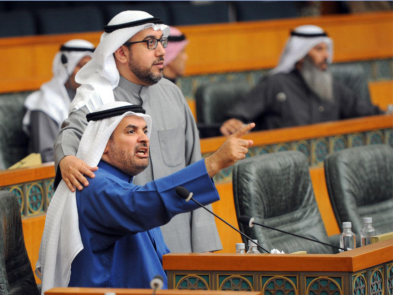 واستأنف الغانم الجلسة، وقال حمدان العازمي: دائما ما يتغنى المجلس والحكومة بالاصلاح، فضلا عن الندوات الانتخابية، والبعض تعمد أن يغير النظام الانتخابي، وصاحب السمو قال ان كان هناك تغيير فيجب ان يكون من داخل المجلس، فالصوت الواحد ما نفع ولا مشي، وفتت المجتمع، والاردن لم يستمر فيه، وبعض الاعضاء اليوم لا يريد غير الصوت الواحد، لانهم لن يصلوا بغيره.واضاف العازمي: اليوم نسني الكثير من القضايا، سواء تعدد مصادر الدخل وغيرها، وللاسف اليوم اذا حصل استجواب ما يطيح الوزير الا اذا باعته الحكومة سواء شيخ او تاجر او مواطن.وتابع: هناك مشاكل للمواطنين كثيرة ومنها البطالة والاسكان والصحة والتعليم، وللاسف حين يدخل النائب المجلس يفكر في كيفية الرجوع اليه.وقال العازمي: الاصلاح ليس موجودا الا في الشعارات، وبعض المسؤولين يتغنى بالاصلاح، وبعد تركه للمنصب يظهر لنا انه فاسد، ناهيك عما يسمى سياسة الباب المفتوح التي اصبحت مغلقة، ولذلك المواطن يلجأ الى النائب وحتى رئيس القسم اصبح يغلق بابه.ولفت الى ان المواطنين في الخارج يلجأون الى سفارات دول الخليج الاخرى لضعف سفاراتنا في الخارج الا اذا كانت لديه توصية من الخارجية.وقال مبارك الحريص ان صاحب السمو حذر من المخاطر الاقليمية فضلا عن الحريات التي نظمها القانون.واضاف الحريص: اليوم هناك كثير من يخلط بين التعبير عن الرأي والسب الذي يجرمه الكثير من القوانين وكذلك مسألة التجنيس، فبعد عام 1965 هناك الكثيرون ممن لهم الحق في التجنيس ولم يحصلوا عليه، وقانون الجنسية قانون مهم، فالجنسية انتماء للوطن ولا يصح ان تستخدم كورقة ضغط، ناهيك عن عجز الحكومة عن توظيف الكويتيين في القطاع النفطي وينتظر الخريج سنتين لفتح الاعلان.وقال الحريص: سوف اوجه سؤالا لوزير النفط الجديد حول مسألة التوظيف، وان لم تكن هناك جدية حياله فسيكون الوزير في موضع مساءلة.ولفت الى ضرورة عدم العبث في تاريخ الكويت، فما جرى تغيير لاسم خباري العوازم وطمس لصيهد العوازم وغيرهما من البيوت في الديرة لابد ان تكون هناك وقفة جادة حياله، ونعرف دوافع من غير هذه الاسماء، ويجب ان تشكل لجنة تحقيق والا سوف نقوم بالمساءلة ازاء هذه التصرفات.في وقت قال النائب خليل الصالح ان رسائل صاحب السمو واضحة بضرورة تحقيق الاستقرار في هذه الاوضاع الحساسة وما تمر به المنطقة، وعندما اقف عند نقطة الرقابة فالردود على الاسئلة البرلمانية ضعيفة جدا، ولا توجد وسيلة للضغط على الوزراء في الرد على الاسئلة بالوقت المحدد.واطلق الصالح على معهد الابحاث معهد المهمات الرسمية، ويجب ان يتخذ وزير التربية اجراء ضد المعهد حتى لا يكون شريكا معهم.وشدد الصالح على ضرورة ان تبسط وزارة الداخلية يدها على الجمارك التي تعد اكثر الجهات المتسببة في دخول السموم الى البلاد، وبالنسبة لمشاكل الشعب قال الصالح ان الحكومة غير قادرة على مواجهة التضخم الموجود، ولا يوجد اي خطوة حقيقية حكومية لتوظيف الكويتيين وهناك 18 الف سرير قادم للمستشفيات، فهل هناك خطط لتوظيف الكويتيين بالمستشفيات؟وذكر الصالح ان هناك بطالة مقنعة في كل الجهات الحكومية، وعلى الحكومة المبادرة بتقديم مشاريع لمعالجة ذلك، ونحن مستعدون كمجلس للتعاون معها، وقدمت اقتراحا بصرف رصيد الاجازات للموظفين الراغبين في ذلك ورفضت الحكومة رغم ان ذلك سيخفف الاعباء الاجتماعية على المواطنين، ولا تلوموا النواب اذا قدموا استجوابات، فنحن مقصرون في حق المواطن، فراتبه لا يلائم الوضع الحالي بسبب التضخم.اما النائب محمد الحويلة فشدد على ان خطاب صاحب السمو هو خطاب الحكمة، وله من الرؤية السديدة لحماية البلد، وتضمن خطابه المحاذير والتحديات والتهديدات التي يفترض ان يعيها المجلس والحكومة والشعب حتى نصون امن البلاد ونحافظ على استقرارها.واضاف الحويلة ان بعض الجهات الحكومية لا تلتزم بسياسة الاحلال، ولا تحفز الطاقات الايجابية، والشباب الكويتي ينتظر العمل، وتحدثت مع وزير النفط بأن اعلانات التوظيف للكوي