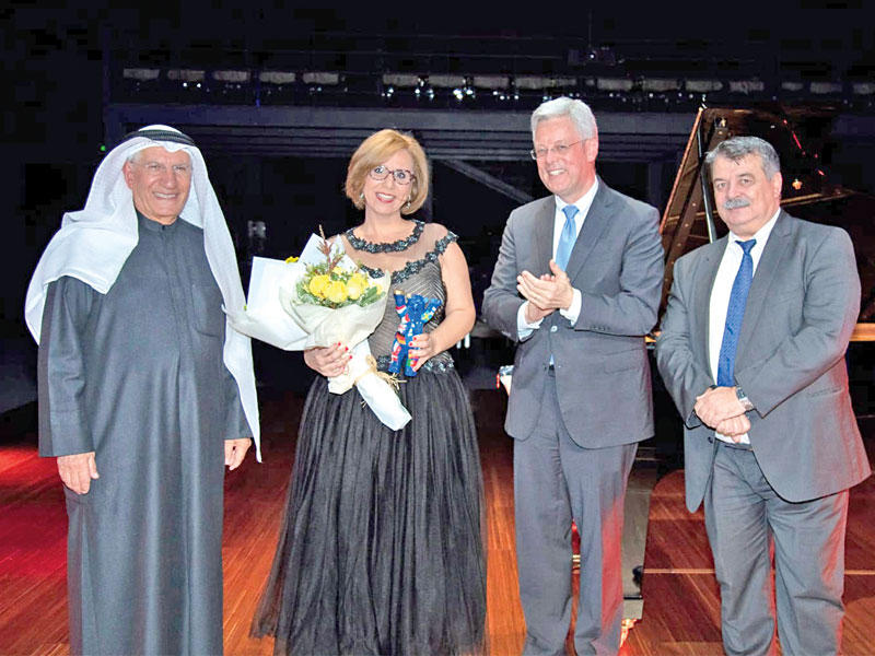 قدمت دار الآثار الإسلامية ضمن فعاليات موسمها الثقافي الـ 24، بالتعاون مع السفارة الألمانية لدى البلاد أمسية موسيقية بعنوان "العزف على البيانو" للعازفة دليانا خريستوفا، أمس الأول، في مركز اليرموك الثقافي بحضور جمهور عاشق للموسيقى الكلاسيكية، يتقدمهم السفير الألماني كارلفريد بيرغنر وعدد من السفراء.قدم الحفل عضو ديوانية الموسيقى بدار الآثار صباح الريس، وقال في حديث مقتضب: "هذه الأمسية لم تكن مدرجة ضمن فعالياتنا، بيد أن السفير الألماني قدم لنا هدية العام الجديد، وهي عبارة عن أمسية كلاسيكية، وأتمنى للجميع الاستمتاع بهذه الليلة الجميلة".بدوره، أعرب السفير بيرغنر، في كلمته، عن الفخر والاعتزاز "بأن أقدم لكم أمسية فريدة من نوعها للعازفة دليانا خريستوفا، التي بدأت العزف على آلة البيانو في سن صغيرة، ولا تزال حتى اليوم تعزف وتحيي العديد من الأمسيات، كما دخلت سلك تعليم العزف على هذه الآلة، وتعزف الليلة الكثير من الأعمال الموسيقية لأشهر المؤلفين الألمان مثل باخ وبيتهوفن وبرامز، إضافة إلى عملين للمؤلف التركي فاضل ساي".