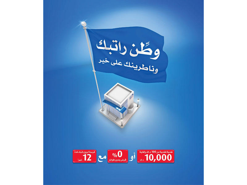 يقدم البنك ضمن حملة «وطّن راتبك» عرضاً آخر يشمل العملاء الحاليين والجدد، وذلك للدخول في سحب ربع سنوي لربح قيمة راتبهم مدة سنة كاملة بحد أقصى 1000 دينار للراتب في الشهر.
