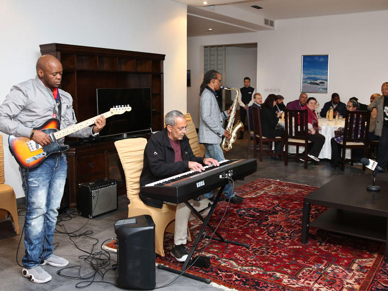 أقام سفير جنوب إفريقيا لدى الكويت مزوليسا بونا في منزله الكائن بمنطقة مشرف حفل عشاء على شرف فرقة الجاز «ماكوي مورباتا» Mccoy Mrubata، التي ستقدم حفلاً ضمن فعاليات مهرجان القرين في نسخته الـ 25، وأيضا على شرف وفد من مؤسسة الكيب الشرقي في جنوب إفريقيا (ECDC)، وشركة برلين بيف (Berlin Beef) المشاركين في معرض هوريكا 2019 بأرض المعارض. وحضر حفل العشاء جمع من أعضاء السفارة، والضيوف، والإعلاميين.وعلى هامش العشاء التقت «الجريدة» رئيس الفرقة ماكوي مورباتا الذي عرف عن نفسه، وقال إنه من جنوب إفريقيا، ويعزف على آلتي الساسكفون والفلوت «المزمار»، لافتا إلى أنه أطلق على فرقته التي يقودها اسم «ماكوي مورباتا»، والتي تتكون من ستة عازفين قام باختيارهم بعناية.وعن زيارته للبلاد قال: «الكويت دولة جميلة جدا، ولم يسبق لي أبدا أن زرتها، وأحببت كثيرا التطور والعمران الكبيرين فيها، وخلال إقامتنا قمنا بزيارة العديد من الأماكن التي حازت إعجابي».