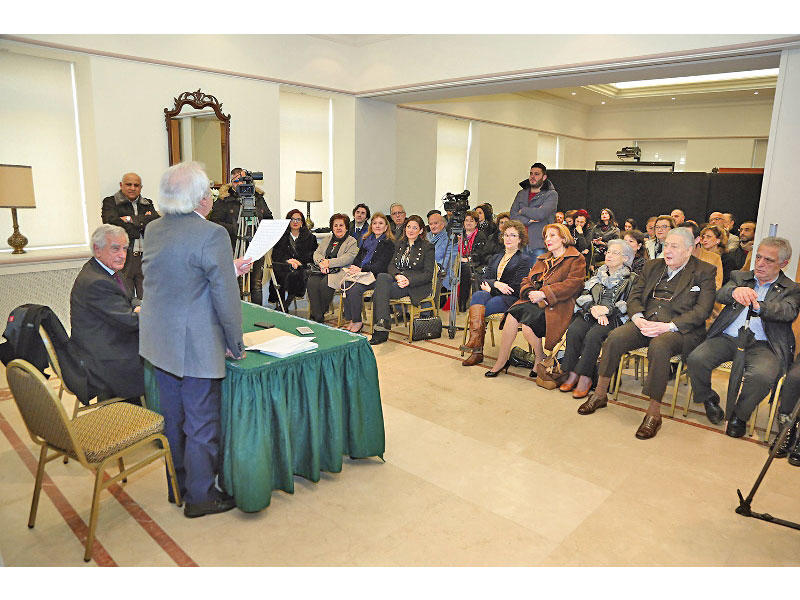 في كلمته في المناسبة عرض مدير مركز التراث اللبناني الشاعر هنري زغيب قصة الكتاب، ومما قال: «قبل سنوات اكتشف السفير المحامي جوي تابت هذا الكتاب باللاتينية القديمة، فكلف البروفسورة الدكتورة ميراي عيسى بترجمته، وأصدره باللاتينية والفرنسية في منشورات «دار النهار» سنة 2009 لمناسبة إعلان «بيروت عاصمة عالمية للكتاب».وأضاف: «ها هو الكتاب يصدر اليوم باللغات الأَربع: اللاتينية والفرنسية والإنكليزية والعربية، حاملا كنزاً ثميناً عن غاليتنا بيروت، تسطع فيه عاصمتنا نجمة تشع على العالم، لا مساحة أرض بل واحة حضارة». وتابع: «إذا المساحة جغرافية ذات حد، فالواحة روحية لا تحد. بهذه القناعة وضع يوهان ستراوخ الكتاب، مفتوناً بما كان لبيروت من دور عظيم، ومركزاً على مدرسة بيروت للحقوق، سماها «زهرة فينيقيا، مخترعة الحروف، مرضعة القوانين»، ووصف قاعات الدراسة، وكيف اختصت فينيقيا بعلم الحقوق وبكون بيريت ومساكنها مقراً له، فكانت مدرسة بيروت بين أقدم معاهد فينيقيا على الإطلاق».وختم: «لكأنها هكذا بيروت منذ فجر التاريخ، تشرق، تشتد عليها الحروب، فلا تغرب إلا لتشرق شمسها من جديد بأبهى وأجمل. لهذا نحن نباهي بها موئلا لنا وواحة حياة. يسكننا الرجاء الدائم أن ليلنا القاتم مهما اسود، نظل ننتظر الفجر الآتي. وتظل تحضننا، بحنانها ورؤياها، الرائعة الخالدة: نجمة بيروت».وفي ختام الاحتفال، وزّع الكتاب هدية إلى الحضور، تمهيداً لتوزيعه على المكتبات الجامعية ومراكز الأبحاث في لبنان والعالم.