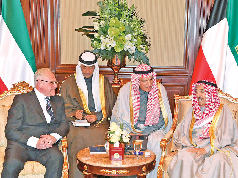احتفل في قصر بيان، صباح أمس، بتسلم صاحب السمو أمير البلاد الشيخ صباح الأحمد، أوراق اعتماد عبدالفتاح حسن سفيراً لجمهورية إثيوبيا الفدرالية الديمقراطية، ورون أفيلا سفيراً لجمهورية فنزويلا البوليفارية، ولي قانغ سفيراً لجمهورية الصين الشعبية، وايجور شيك سفيراً لجمهورية سلوفاكيا، وذلك كسفراء لبلادهم لدى دولة الكويت.حضر مراسم الاحتفال وزير شؤون الديوان الأميري الشيخ علي الجراح، ونائب رئيس مجلس الوزراء وزير الخارجية الشيخ صباح الخالد، ونائب وزير شؤون الديوان الأميري الشيخ محمد العبدالله، ووكيل الديوان الأميري ومدير مكتب صاحب السمو أمير البلاد أحمد فهد الفهد، والمستشار في الديوان الأميري محمد أبوالحسن، ورئيس المراسم والتشريفات الأميرية الشيخ خالد العبدالله، ومساعد وزير الخارجية لشؤون المراسم السفير ضاري العجران، ورئيس هيئة الحرس الأميري اللواء ركن فهد الزيد.كما استقبل سموه، سمو الشيخ ناصر المحمد، ود. رولا دشتي، بمناسبة تعيينها أمينة تنفيذية للجنة الأمم المتحدة الاقتصادية والاجتماعية لغربي آسيا (اسكوا) من الأمين العام للأمم المتحدة أنطونيو غوتيرس.وأشاد سموه بحصولها على هذه الثقة الكبيرة بتولي هذا المنصب الرفيع، الذي يشكل مصدر فخر واعتزاز للجميع، كما يجسد المكانة العالية التي تحظى بها الكويت، متمنيا سموه لها دوام التوفيق والسداد.