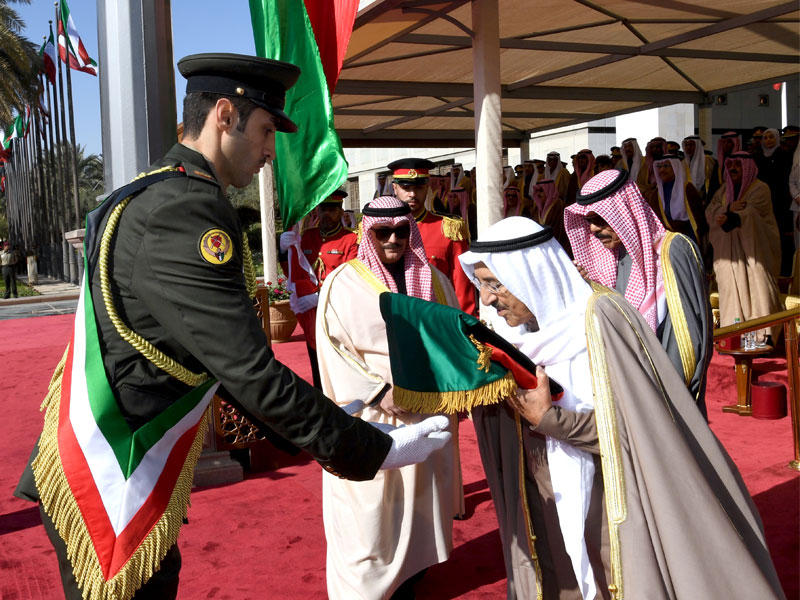 ● المدفعية أطلقت «21» طلقة ترحيبية بسموه بحضور ولي العهد والغانم وكبار المسؤولين