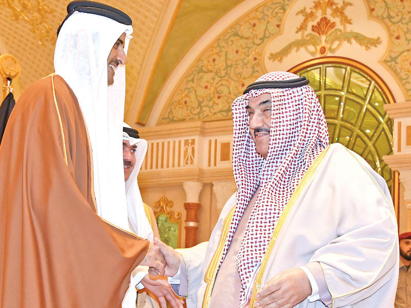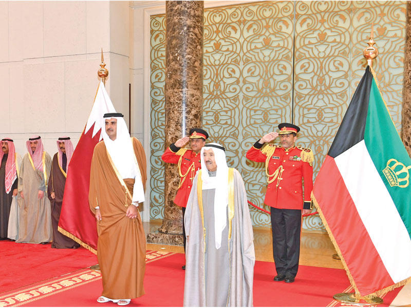استقبل سمو أمير البلاد الشيخ صباح الأحمد بقصر بيان، صباح أمس، أمير دولة قطر الشقيقة الشيخ تميم بن حمد آل ثاني والوفد الرسمي المرافق لسموه، وذلك بمناسبة زيارته الرسمية للبلاد.وعقدت المباحثات الرسمية بين الجانبين، حيث ترأس الجانب الكويتي سمو الأمير وسمو ولي العهد الشيخ نواف الأحمد، ورئيس مجلس الوزراء سمو الشيخ جابر المبارك وكبار المسؤولين بالدولة.وعن الجانب القطري الشيخ تميم والممثل الشخصي لسموه، الشيخ جاسم بن حمد، وعدد من الشيوخ والوزراء.