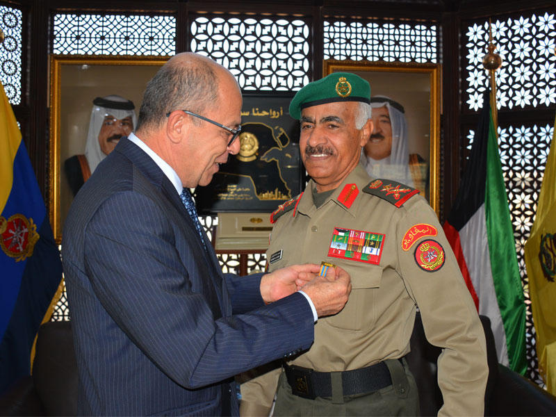 وقام الكتروسي بتقليد النهام وسام الفارس الدولي للمنظمة الدولية للحماية المدنية والدفاع المدني، تقديرا لإسهامه ومنتسبي «الداخلية» في دعم الإدارة العامة للإطفاء، والتعاون على المستوى الوطني بتطبيق نظم الحماية المدنية للأرواح والممتلكات بتميز واحترافية والإدارة الناجحة لأزمة السيول والأمطار الغزيرة التي شهدتها الكويت أخيرا. وأعرب النهام عن شكره لهذا «التقدير الدولي الكبير، الذي يُعد حافزا لمزيد من البذل والعطاء».واستقبل وكيل الحرس الفريق الركن هاشم الرفاعي الكتروسي وزايد ونقل إليهما تحيات القيادة العليا للحرس الوطني.وبحث اللقاء تعزيز التعاون بين الحرس الوطني والمنظمة الدولية للحماية المدنية في مجال الحماية والإنقاذ والأمن، حيث أكد الفريق الرفاعي سعي الحرس إلى تعزيز دوره في مساندة أجهزة الدولة لحماية المنشآت ومواجهة الكوارث والأزمات.وقام الكتروسي بتقليد المعاون للعمليات والتدريب في الحرس الوطني اللواء الركن فالح شجاع وسام القائد، تقديرا لإسهامه ومنتسبي الحرس الوطني في دعم الإدارة العامة للإطفاء، وتقديم الإسناد لها في مواجهة الحوادث الكبرى.من جانبه، أكد اللواء الركن شجاع أن تتويجه بهذا الوسام الرفيع وسام على صدور منتسبي الحرس وتقدير دولي لجهودهم في خدمة الوطن.