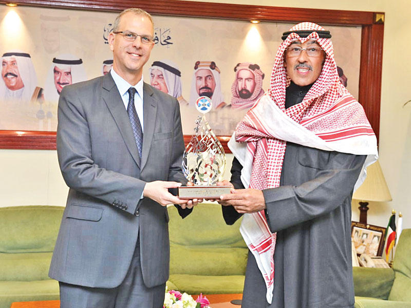 استقبل محافظ الأحمدي الشيخ فواز الخالد، في مكتبه، سفير كندا لدى الكويت لويس بيير ايمون، وتبادلا الأحاديث الودية التي تناولت العلاقات الثنائية التي تربط البلدين الصديقين وسُبل تعزيزها في جميع المجالات. وتطرق اللقاء إلى بحث فرص تطوير التعاون المشترك وتبادل الخبرات بين البلدين على مستوى الأنظمة الإدارية المحلية عموماً وعلى صعيد المقاطعات والأقاليم والمحافظات على وجه الخصوص.