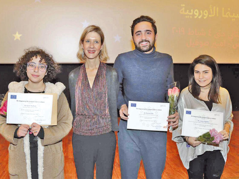 ضمن احتفال مهرجان السينما الأوروبية، بعيده الخامس والعشرين (من تنظيم بعثة الاتحاد الأوروبي في لبنان)، نظمت مسابقة أفضل فيلم قصير للطلاب، بهدف دعم مواهبهم، عرض خلالها 12 فيلماً قصيراً من 12 معهداً لبنانياً، للفنون السمعية والبصرية، قدَّمت بعده نائبة رئيسة بعثة الاتحاد الأوروبي في لبنان جوليا كوخ دي بيوليه، جائزة أفضل فيلم قصير للطلاب، لثلاثة أفلام اختارتها لجنة تحكيم دولية تألفت من: فانيسا شمعون من معهد غوته، وماتيلد شاسانيو من المعهد الفرنسي في لبنان، وكاتارزينا توزنيسكا نيسيوسكا من سفارة بولندا، ونور عويضة من جمعية متروبوليس.في كلمة ألقتها في المناسبة قالت دو بيوليه: «لنأخذ قصة مير-جان بو شعيا، الذي فاز بإحدى جوائز الأفلام القصيرة للطلاب في مهرجان الاتحاد الأوروبي في عام 2012، عن فيلمه بعنوان «فيلم كبير». وبعد سنوات، أخرج أول فيلم له بعنوان «فيلم كتير كبير»، الذي حاز تنويهات دولية، واختير رسمياً لتمثيل لبنان في فئة الأفلام الأجنبية، لحفلة جوائز الأوسكار التاسع والثمانين». يذكر أن الفائزين بالجوائز هذه السنة، ستتاح لهم فرصة المشاركة في مهرجان دولي للأفلام، بما في ذلك «مهرجان أوبيرهاوسن للأفلام» في ألمانيا بالشراكة مع معهد غوته، ومهرجان في فرنسا بفضل المعهد الفرنسي في لبنان، و«المهرجان الدولي للسينما المستقلة» في كراكوف بدعم من سفارة بولندا في لبنان.الأفلام الفائزة