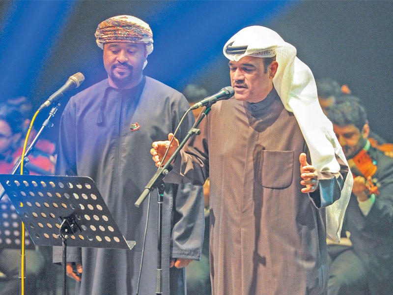 واستهلت الفرقة الموسيقية برنامج الحفل بأغنيتي "يا خير موطن" و"الكويت حبها غير"، بعدها صعد المسرح الفنان القدير محمد البلوشي بمعية الفنان العماني ماجد المخيني، ليؤديا أغنية "أرض السلام" وسط تفاعل الحضور، بعدها غنى المخيني مع الفنان الكويتي فهد الحداد "إحنا وطن واحد".ثم شارك الفنان الكبير فيصل السعد بأغنيتي "هذي هي الكويت" و"خلنا على يمناك"، وسط حماس وتفاعل رائعين من الجمهور، وأتت سماح صديق من بعده، لتغني "يا دارنا يا دار"، كلمات الشاعر أحمد مشاري العدواني وألحان رياض السنباطي والتي غنتها أم كلثوم، ويقول مطلعها: "يا دارنا يا دار/ يا منبتَ الأحرار/ يا نجمةً للسنا/ على جبين المنى/ السحرُ لما دنا/ غنى لها الأشعار/ يا دارنا يا دار/ يا منبت الأحرار".وأطرب صوت ماجد المخيني الحضور بالأغنية الشهيرة "مغازل الخير دوري"، وهي اللوحة الحادية عشرة من أوبريت "صدى التاريخ عام 1986 للمطربة الكبيرة سناء الخراز وكلمات د. عبدالله العتيبي وألحان الموسيقار غنام الديكان، لتطل سماح صديق مرة أخرى وتغني "يا ديرتي يا كويت".ثم توالت الأعمال الغنائية الوطنية، حيث أدى فهد الحداد "لا ما تضيع الدار"، ليعقبه محمد البلوشي بأغنية "يا كويتنا أم السلام"، ثم اختتمت الفرقة الموسيقية الحفل بالأغنية الوطنية الشهيرة "مصيرنا واحد" لفرقة التلفزيون، كلمات الشاعر القدير عبداللطيف البناي، وألحان الراحل المبدع مرزوق المرزوق، وتقول كلماتها: "مصيرنا واحد وشعبنا واحد/ الله أكبر يا خليج ضمّنا/ أنا الخليجي والخليج كله طريجي/ تبارك يا خليجنا/ تبارك بعز وهنا".