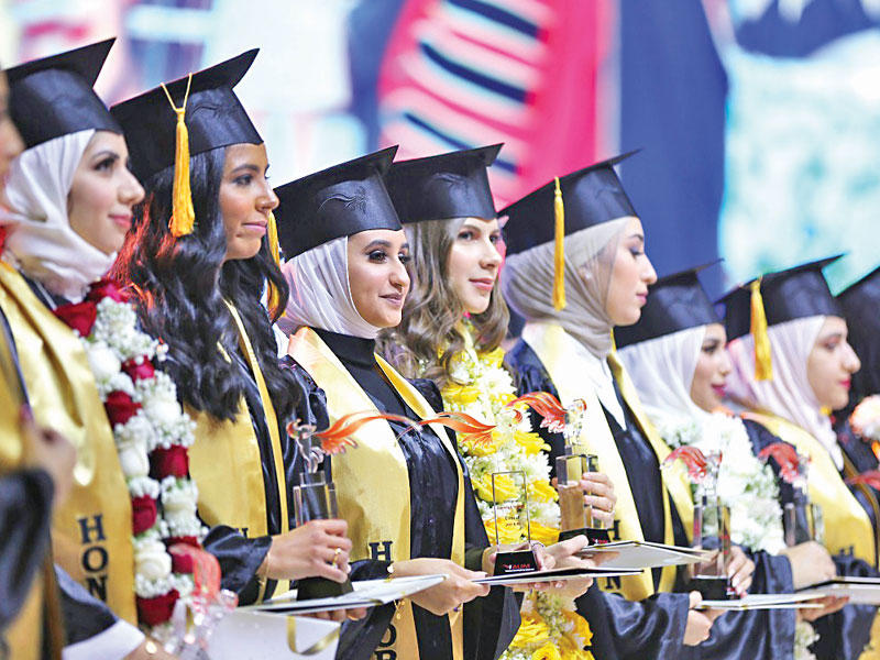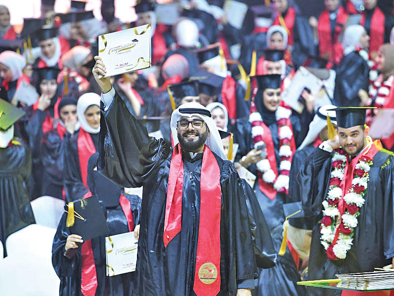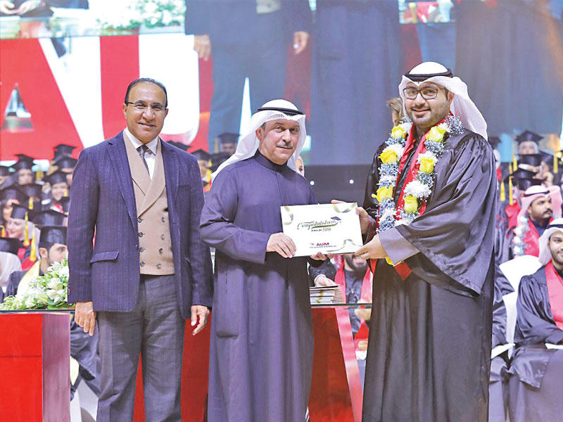 احتفلت جامعة الشرق الأوسط الأميركية (AUM) بتخريج 1119 طالباً وطالبة، يمثلون الدفعة السابعة من خرّيجيها للعام الجامعي 2017-2018، خلال احتفالات أقامتها في مركزها الثقافي بحرمها الجامعي، برعاية وزير التربية وزير التعليم العالي د. حامد العازمي، ممثّلاً بالأستاذ الدكتور حبيب أبل، الأمين العام للأمانة العامة لمجلس الجامعات الخاصة، وبحضور رئيس مجلس أمناء الجامعة فهد العثمان، والرئيس الأكاديمي للجامعة د. مهند حسنين، وأعضاء الهيئتين الأكاديمية والإدارية، وأولياء الأمور. وعبّر د. أبل، خلال الاحتفال، عن سروره بمشاركة كوكبة جديدة من طلاب وطالبات الجامعة فرحتهم بالتخرج، ممثلاً للوزير العازمي، لافتاً إلى أن مجلس الجامعات الخاصة واكب مسيرة جامعة الشرق الأوسط الأميركية منذ نشأتها، وشهد على النجاح والتقدّم اللذين حقّقتهما في كل المجالات. من جهته، هنأ العثمان الخريجين على نجاحهم، داعياً إياهم إلى عدم التركيز على الصورة السلبية، وعدم الاستسلام أمام الصعوبات والعوائق؛ لأن ذلك سيكون إجحافاً بحقّهم وحقّ الوطن، مضيفاً: «في جامعة الشرق الأوسط اعتدتم التحدّي والمثابرة في تخطي الصعوبات، ولدينا ملء الثقة بأنكم ستكونون نجوم مستقبل الكويت».بدورهم، ألقى الخريجون كلمات وصفت مسيرتهم في «AUM»، وعبّرت عن مشاعرهم وامتنانهم لما قدّمته لهم الجامعة.