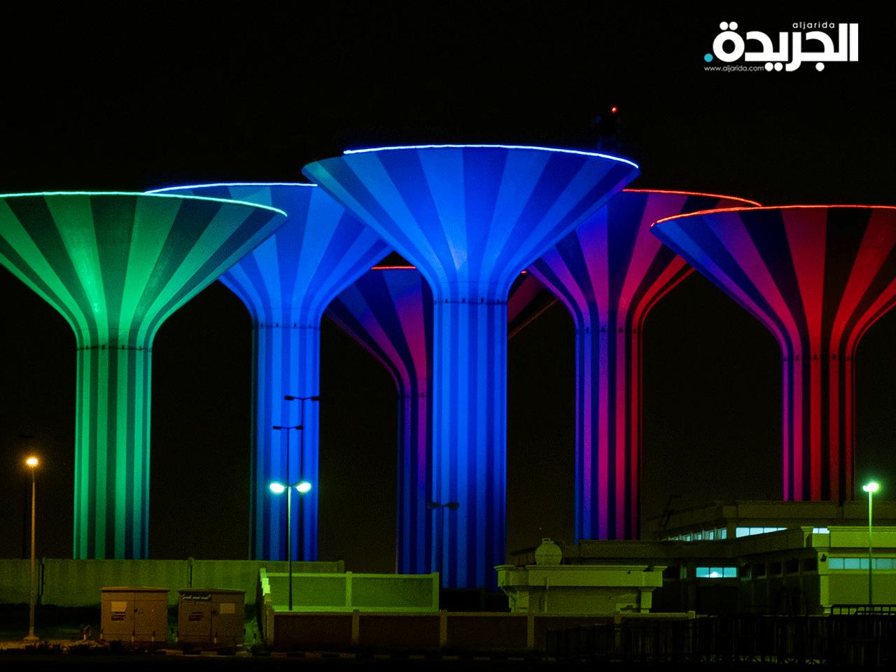 معالم الكويت الشهيرة تتوشح بالعلم إبتهاجاً بأعياد البلاد الوطنية