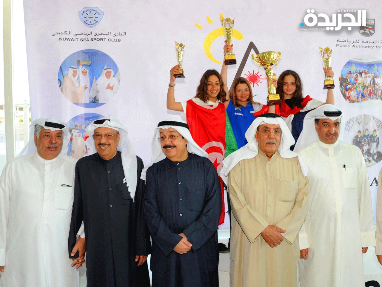 اختتمت بطولة الكويت الدولية للقوارب الشراعية اليوم السبت فعاليات نسختها ال12 بتوزيع الجوائز على الفائزين وتكريم الحكام والجهات المشاركة التي تنظمها لجنة الشراع والتجديف والكاياك في النادي البحري الرياضي الكويتي.وشهدت النتائج النهائية من البطولة التي تضمنت مشاركة دولية واسعة فوز المتسابق ماليكة بيلومي من ايطاليا بالمركز الاول في فئة (الاوبتمست) يلية موسى بيلومي من ايطاليا ثانيا ويحيي الفخراني من مصر ثالثا.