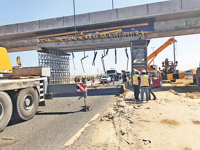 وأشارت إلى أن فريق العمل في المشروع "قيد الإنشاء" قام، على الفور، برفع الدعامية المنهارة وإزالة المخلفات والأخشاب التي سقطت من جراء سقوطها، في حين أعلنت رئاسة الأركان العامة للجيش وقوع حادث اصطدام لإحدى الآليات العسكرية التابعة للجيش الكويتي ظهر أمس بأحد الجسور الخاصة بعبور الجمال "قيد الانشاء" على طريق الملك فهد بالقرب من منطقة بنيدر باتجاه مدينة الكويت.