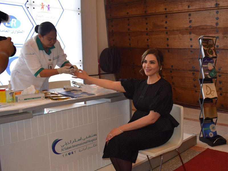 ماجدة الصباح دشنت خدمات جناح «السلام الدولي» في المؤتمر بإجراء فحوصات طبية