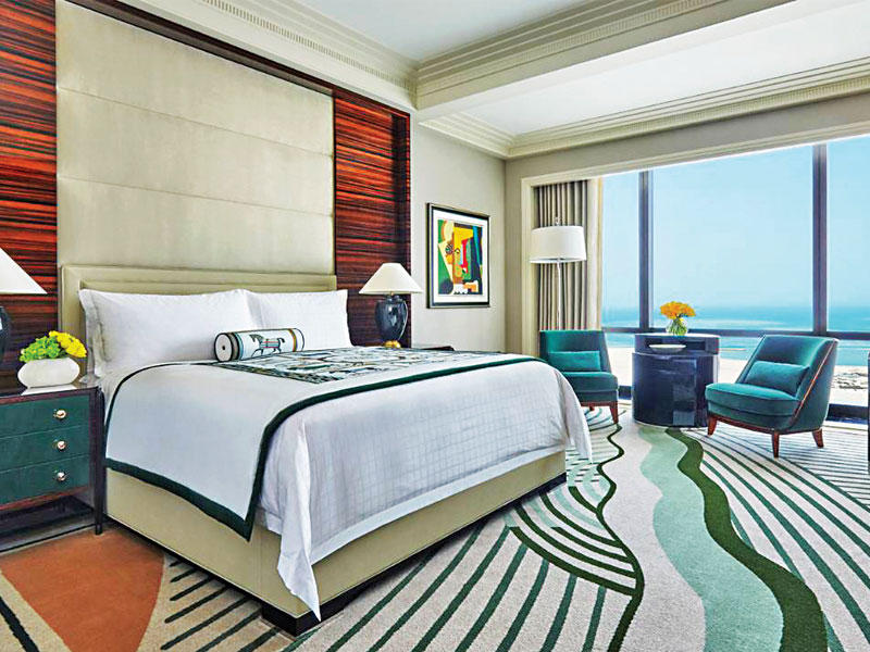 يضم "فورسيزونز خليج البحرين" نحو 273 غرفة، في 57 جناحاً، وهو مصمم تصميماً معمارياً حصرياً من 68 طابقاً على جزيرة خاصة تبلغ مساحتها خمسة هكتارات في وسط العاصمة المنامة، ومستوحى من فخامة الرحلات البحرية مع مناظر خلابة للعاصمة ولوحات لفنانين بحرينيين.ويسمو الفندق على جزيرة خاصة ذات مناظر طبيعية مميزة، كما يسهل الوصول إليه من جسر متصل بالعاصمة والمنطقة التجارية والترفيهية، إضافة إلى المناطق التاريخية والثقافية، كما أنه يبعد 15 دقيقة عن مطار البحرين الدولي.ويضم "فورسيزونز خليج البحرين" منتجعاً صحياً بمساحة 3.485 م2، وبه 17 غرفة علاجية، مع مرافق تشمل نادي اللياقة البدنية - واحد للنساء فقط، وآخر للنساء والرجال- إضافة إلى لاونغين للاسترخاء يقدم فيهما العصائر الطازجة، وغرف تبديل وجاكوزي، وغرفة للبخار، وأخرى لاستنشاق الأملاح، مع مسبح داخلي. أما مطاعم الفندق فأبرزها "كت" للشيف وولفغانغ باك، الذي يقدم ستيك هاوس، على نحو 112 مقعداً في 20 إلى 40 غرفة طعام خاصة، ومطعم "ري اسيا" الذي يقدم طعاماً آسيوياً عصرياً، ومطعم "بحرين باي كِتشن"، ببوفيه عالمي و10 غرف خاصة للطعام، ومطعم "فينتو"، الذي يوفر خدمات الشيشة مع الطعام الإيطالي، إلى جانب مطعم آزور، الذي يقدم وجبات خفيفة عالمية بجانب المسبح.ولا يغيب الترفيه عن "فورسيزونز خليج البحرين"، بما يمتلكه من برك السباحة، إذ يضم شاطئاً ذا رمال بيضاء نقية يمتد على مسافة ١٦٠ متراً، وبركة الإنفينيتي الخارجية، وبركة المنتجع الصحي الداخلية، إلى جانب بركة آزور الخارجية، وبركة الأطفال الخارجية.