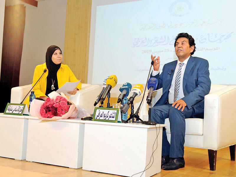 أحيا الأمسية الأولى من مهرجان «ربيع الشعر العربي»، الشاعر كريم العراقي، الذي أنشد قصائده بتألق ملحوظ، في حضور حشد كبير من الجمهور.