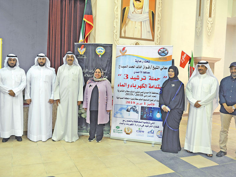 دشنت محافظة الأحمدي، صباح أمس، حملة الترشيد «الثالثة» لاستدامة الكهرباء والماء، التي تنظمها المحافظة برعاية المحافظ الشيخ فواز الخالد، بالتعاون مع وزارتي الكهرباء والماء والتربية.وانطلقت الحملة من مدرسة عبدالرحمن الدعيج المتوسطة بنين بمنطقة الصباحية، بحضور ممثل المحافظة مدير إدارة العلاقات الحكومية حامد الإبراهيم، ومديرة إدارة المراقبة الفنية في وزارة الكهرباء والماء رئيسة الحملة الخليجية للترشيد المهندسة إقبال الطيار.