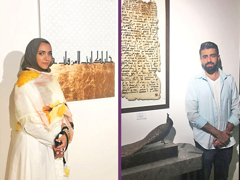 وأوضح أن المشاركات تنوعت من ناحية الأساليب والمدارس، وبعضها جاء بطرق مختلفة وتقنيات جديدة، مشيرا إلى أن بعض الفنانين يشاركون في معارض للمرة الأولى، وهي بادرة جميلة وتدعو للفخر بأن هناك شريحة من المجتمع تهتم بالفن. "الجريدة" جالت في المعرض، والتقت مجموعة من الفنانين، وكانت البداية مع الفنان عمر الحمد، حيث قال إنه شارك بعمل بعنوان "الإنسانية"، ويمثل مسيرة البشرية منذ بدايتها إلى وقتنا الحالي، ويرصد مراحلها المختلفة. وذكرت الفنانة عذاري بوحمد أن مشاركتها هي الأولى في مركز "وجهه"، مشيرة إلى أن العمل الفني جاء نتاج تأثرها بالقراءة للثقافات والحضارات المتنوعة، وبينت د. رحاب فاضل أنها شاركت بأربعة أعمال فنية، الأول بعنوان "أزوريت"، واستخدمت فيه مادة الريزن والكريستال، والأحجار، والجليتر، واستخدمت ألوان الإكريليك وميتا بودر على "الود بانل"، أما الأعمال الأخرى فجاءت بعناوين "دورزي"، "أليتريت"، "بيريل جولد".وأفادت الفنانة بشاير العلي بأنها رسمت عملا يعبر عن الخط العربي بالشكل الحديث وليس الكلاسيكي، واستخدمت الخطين الكوفي والفاطمي بتركيبة جديدة، وكتبت إحدى عبارات المتنبي وهي "خَليلُكَ أنتَ لا مَن قُلتَ خِلّي"، مبينة أنها تشارك في المعرض للمرة الأولى، وهذا العمل هو الأول لها. بدورها، ذكرت الفنانة فوز المطيرات أن تلك هي مشاركتها الأولى في المعرض، وقدمت عملا بعنوان "Black Swan"، مشيرة إلى أنها استخدمت أسلوب المكسميديا على 3D، وفكرة اللوحة تركز على دمج آلة الموسيقى مع البرينا، وتمثل البجعة السوداء التي تختلف نظرتها عن البجعة البيضاء.