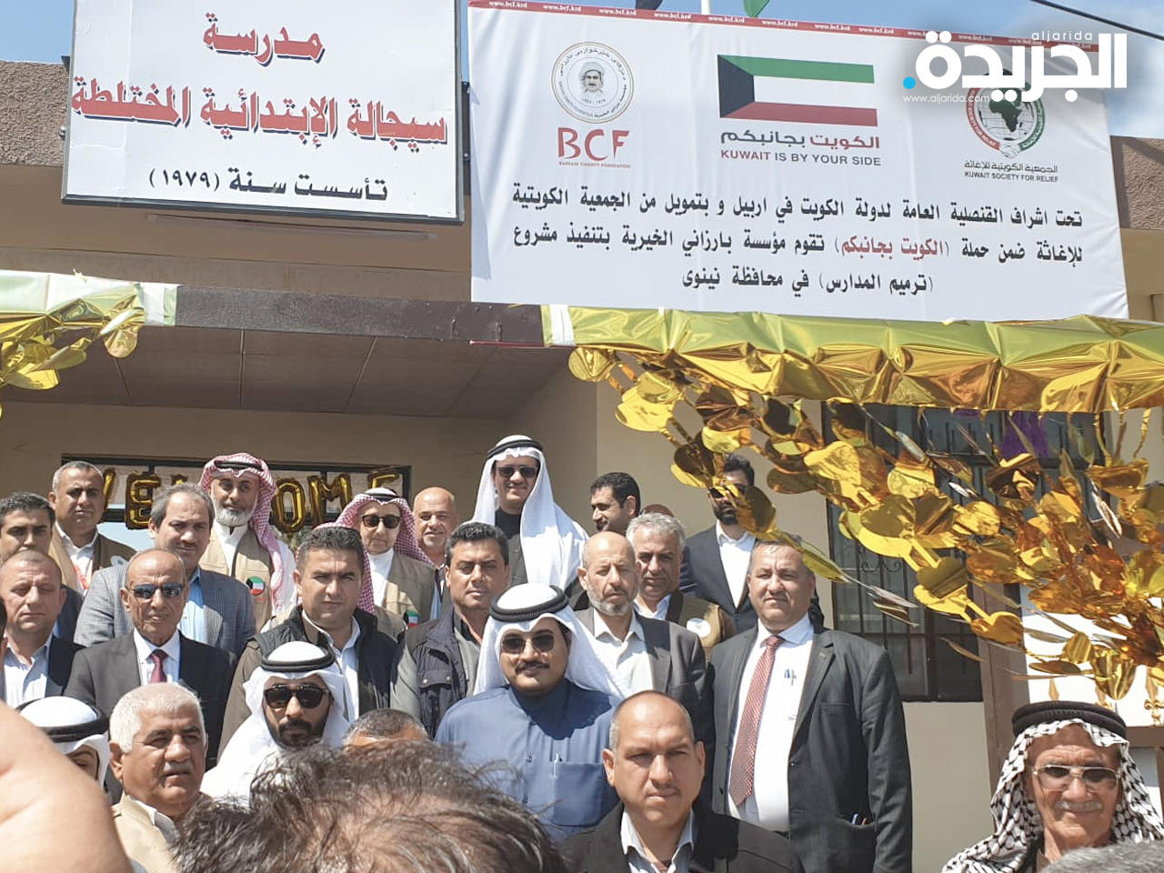 ولفت إلى أن إعادة تأهيل المدارس تتم بتنفيذ من الجمعية الكويتية للإغاثة وبالتنسيق مع مؤسسة البارزاني الخيرية.من جهته، قال عضو الجمعية الكويتية للإغاثة بدر بو حمد في تصريح مماثل لـ (كونا) «إن فكرة إعادة تأهيل المدارس جاءت من خلال لقاءاتنا السابقة مع ممثلي وزارة التربية وأولياء أمور الطلبة حيث رأينا أنه من الضروري إعاة ترميم المدارس ليواصل الطلاب مسيرتهم التعليمية».وأضاف بوحمد أن الافتتاح كان رائعاً حيث لاحظ فرحة الطلاب وذويهم بافتتاح المدرسة، لافتاً إلى أن العمل جار لإعادة تاهيل عدد آخر من المدارس ومشيراً إلى أن العمل يأتي ضمن تعهدات الكويت في مؤتمر إعادة اعمار العراق الذي استضافته في فبراير من العام الماضي. وأوضح بوحمد الذي قام مع وفد للجمعية بزيارة أربيل بأنه تم توزيع الحقائب المدرسية ولوازم القرطاسية على الطلبة.وبالنسبة لنشاطات وفد الجمعية خلال زيارته لاقليم كردستان قال بوحمد أنها تركزت حول زيارة المشاريع المنجزة سابقاً من قبل الجمعية الكويتية للاغاثة مثل المراكز الصحية في مخيمي «الخازر» و«حسن شام» وافتتاح المدرسة وتسليم الأدوية والمعدات الطبية لمركز غسل الكلى وزيارة مركز «باهوز» المتخصص لعلاج حالات التوحد وصعوبة النطق وبطيئي الحركة إضافة إلى عقد لقاءات مع عدد من المنظمات الانسانية والجهات الحكومية لبحث المشاريع المستقبلية التي من الممكن تنفيذها.بدوره، قال مدير ناحية الكوير رزكار اسماعيل أن وحدات إدارية تعرضت للتدمير جراء سيطرة «داعش» على الناحية ومن بينها المدارس.ورأى اسماعيل أن عودة الحياة الطبيعية إلى الأماكن التي كانت تحت سيطرة «داعش» غير ممكنة دون إعادة تأهيل المرافق الأساسية ومنها المدارس، معتبراً إن إعادة تأهيل المدارس تؤدي إلى استقرار أهالي المنطقة وإعادة الحياة إليها.وأشار إلى أن هذا الدعم المقدم من قبل الكويت ضروري وحيوي جداً لعودة الحياة إلى حالتها الطبيعية بعد أكثر من أربعة أعوام من التهجير والنزوح.وبحسب تربويين فإن أكثر من ألف طالب وطالبة كانوا يعانون صعوبة في مواكبة مراحلهم الدراسية بسبب قلة وجود المدارس في الناحية لكنهم تمكنوا اليوم من ارتيادها من جديد بفضل جهود الكويت الانسانية ودعمها للقطاع التربوي.يُشار إلى أن الكويت ومن خلال تمثيلها الدبلوماسي أولت اهتماماً بالغاً بالجانب التربوي للطلبة النازحين سواء كانوا في المخيمات أو داخل المدن حيث تم إنشاء أكثر من خمس مدارس في كرفانات بمخيمات النازحين في اربيل ودهوك بينما تم بناء ثلاث مدارس مماثلة أخرى في مدينة اربيل للطلبة النازحين إضافة إلى تجهيزها بالمستلزمات الضرورية.كما قامت دولة الكويت بعد تحرير الموصل ببناء العديد من المدارس في المدينة اضافة إلى توفير الطاولات المدرسية والمستلزمات لها وللمدارس الأخرى كما تم توزيع نحو 30 ألف حقيبة مدرسية مع لوازم القرطاسية على الطلبة النازحين.