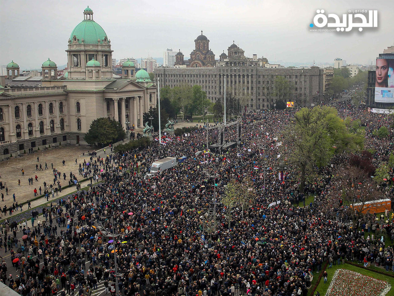 احتشد آلاف من المحتجين المناهضين للحكومة في العاصمة الصربية بلغراد اليوم السبت للمطالبة بإنهاء حكم الرئيس ألكسندر فوسيتش وحزبه التقدمي والسماح بحرية أكبر لوسائل الإعلام وبإجراء انتخابات حرة ونزيهة.ونظم تحالف من أجل صربيا المظاهرات السلمية وهو تحالف واسع يضم 30 حزبا ومنظمة بدأ احتجاجات أسبوعية في ديسمبر.