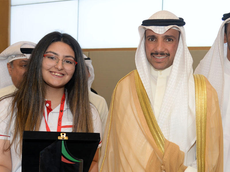 كرم رئيس مجلس الأمة مرزوق الغانم الطلبة الأعضاء المشاركين في جلسة (برلمان الطالب) السادس.وسلم الغانم عقب انتهاء الجلسة الطلاب والطالبات شهادات تقديرية ودروعا تذكارية، على جهودهم في نجاح جلسة برلمان الطالب. وحضر التكريم الوكيل المساعد للتعليم الخاص والنوعي د. عبد المحسن الحويلة، ومدير إدارة التعليم النوعي د. سلمان اللافي، وعدد من الموجهين وأركان الوزارة، والأمين العام لمجلس الأمة علام الكندري.