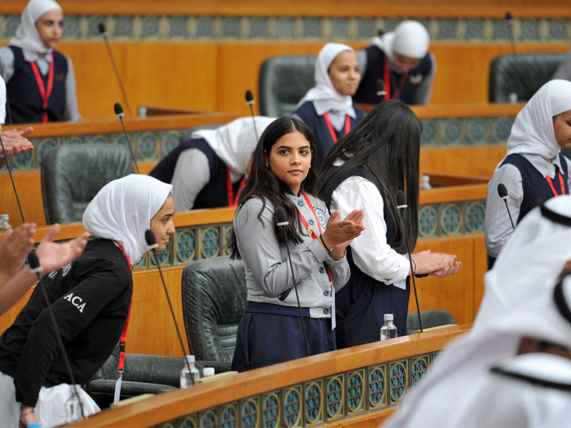 ترأس رئيس مجلس الأمة مرزوق الغانم جلسة برلمان الطالب السادس (الفصل التشريعي السادس)، أمس، في قاعة عبدالله السالم، بحضور وزير التربية وزير التعليم العالي حامد العازمي وعدد من مسؤولي الوزارة وقيادات الهيئات الشبابية والطلبة أعضاء البرلمان الطلابي، من التعليم العام والخاص ومن فئة ذوي الإعاقة.وقال الغانم، في كلمة افتتح بها الجلسة، إن "برلمان الطالب منتدى ديمقراطي شبابي مفتوح وشفاف ومنصة للتعبير الحر وفضاء للتفاعل بين الأجيال".وأوضح الغانم ان برلمان الطالب فرصة سانحة ومناسبة مواتية لأن يبدي الطلاب ما يشاؤون من آراء ورسائل وأفكار ورؤى ومفاهيم وفق اللائحة وجدول الأعمال وفي اطار الدستور.