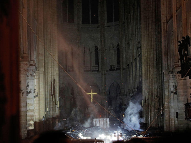 وكان الرئيس إيمانويل ماكرون أعلن، مساء أمس الأول، لدى تفقده الكاتدرائية وقد بدا عليه التأثّر أمام ألسنة النيران التي كانت لا تزال تلتهم الكنيسة، أنّ «الأسوأ تم تجنّبه»، واعداً بإعادة بناء المعلم التاريخي ومناشدة الموهوبين من أنحاء العالم للمساهمة.من جهتها أكدت المديرة العامة لـ«اليونسكو» أودري أزولاي، أمس، أن المنظمة الأممية «تقف إلى جانب فرنسا» المنكوبة بالحريق، وفي مقدورها تنظيم حملة تضامن دولية، وستبدأ بحملة تبرعات وطنية لإعادة بناء نوتردام».البابا