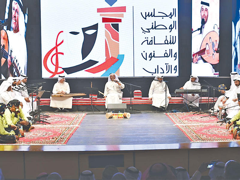 نظم المجلس الوطني للثقافة والفنون والآداب جلسة شعبية تراثية خليجية استثنائية شهدت حضورا جماهيريا كثيفا توافد على مسرح عبدالحسين عبدالرضا بمنطقة السالمية، للاستمتاع بدرر التراث الأصيل واستعادة الماضي الجميل بما يميزه من اعمال شعبية ثرية بمضامينها وغنية بموسيقاها، التي تسرق القلوب وتبحر بالعقول الى زمن مضى، لكن آثاره باقية وذكرياته عالقة بالأذهان ابدا ما حيينا.وعلى مدار ساعتين، استمتع الحضور بأجمل الأعمال التي شدا بها الثلاثي ذو الحضور المميز في المشهد الغنائي المحلي والخليجي لاسيما في اللون الشعبي، وهم عبدالعزيز الضويحي وسلمان العماري وسلطان مفتاح بمعية الفرقة اليمنية للفنون الشعبية، التي ألهبت حماس الجمهور بأداء مجموعة مميزة من الرقصات واللوحات التشكيلية المستقاه من الفنون البحرية فزادت المشهد بهاء، ولعبت الشاشات التي كانت خلف المسرح وعلى جانبيه دورا مهما في عرض مجموعة من الصور واللوحات التعبيرية.