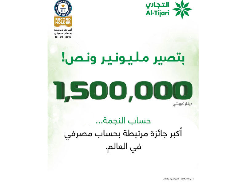 وأوضح البنك أن جوائز حساب النجمة أصبحت مميزة بحجم مبالغ الجوائز المقدمة، إضافة إلى تنوعها طوال السنة، وتتضمن السحوبات جائزة أسبوعية بقيمة 5 آلاف دينار، وشهرية بقيمة 20 ألف دينار، ونصف سنوية قدرها نصف مليون دينار، إضافة إلى أكبر جائزة في العالم مرتبطة بحساب مصرفي، والتي حصــل البنك بموجبها على شهـــادة غينيس للأرقـــام القياسيـــة، والبالغــــة 1.5 مليون دينار.وعن آلية فتح حساب النجمة والتأهل لدخول السحوبات والفوز بالجوائز القيمة، كشف البنك أنه يمكن فتح حساب النجمة فقط بإيداع 100 دينار، ويجب أن يكون في الحساب مبلغ لا يقل عن 500 دينار لدخول جميع السحوبات على كل الجوائز التي يقدمها الحساب. وبالنسبة لفرص الفوز، فإنه كلما زاد المبلغ المحتفظ في الحساب زادت فرص فوز العميل، حيث إن كل 25 دينارا توفر فرصة واحدة للفوز، فضلا عن المزايا الإضافية التي يوفرها الحساب، إذ يحصل العميل على بطاقة سحب آلي، ويستطيع الحصول على بطاقة ائتمان بضمان الحساب وكذلك الحصول على كل الخدمات المصرفية من البنك التجاري. أما بالنسبة لحملة «راتبك وفوقه كاش» الموجهة للموظفين الكويتيين والوافدين في القطاعين الحكومي والخاص وكذلك المتقاعدين والمستمرة حتى 31 ديسمبر 2019، وعن آلية الانضمام إلى هذه الحملة والاستفادة من المزايا التي توفرها، فقد أوضح البنك أن باستطاعة أي موظف كويتي يزيد راتبه على 500 دينار، سواء تم تعيينه حديثاً أو في الخدمة الفعلية من سنين تحويل راتبه إلى البنك والاستفادة من مزايا هذه الحملة والحصول على هدية نقدية فورية مضمونة بـ 250 دينارا، أو قرض بدون فائدة بقيمة خمسة أضعاف الراتب وبحد أقصى 10 آلاف دينار، إضافة إلى الدخول تلقائياً في السحب الأسبوعي على جائزة مقدارها 1000 دينار. أما بالنسبة للعملاء الوافدين الذين يندرجون تحت حساب الخدمات المصرفية الشخصية Premier Banking والمخصص للرواتب من 1700 دينار وما فوق فسوف يتمكنون من الحصول على هدية نقدية فورية، إضافة إلى المتقاعدين الذين يحصلون على معاش تقاعدي قدره 1000 دينار وما فوق، فبمجرد تحويل معاشهم التقاعدي على البنك التجاري سيحصلون على هدية فورية بقيمة 150 دينارا والدخول تلقائياً في السحب الأسبوعي على جائزة مقدارها 1000 دينار والاستفادة من مزايا هذه الحملة التي تم تصميمها خصيصا بصورة تناسب الموظفين الكويتيين والوافدين العاملين في القطاعين الخاص والحكومي والمتقاعدين، لكونها أيضا توفر لهم فرصة الحصول على العديد من المميزات الإضافية، والتمتع بالعديد من الخدمات المتطورة والمنتجات الفريدة والمتميزة التي يوفرها التجاري لعملائه لتلبي احتياجاتهم وترتقي لمستوى تطلعاتهم.