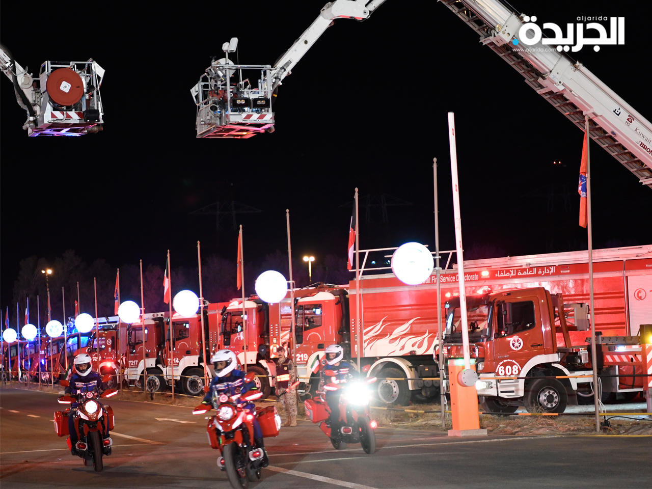 "بسم الله الرحمن الرحيمالحمد لله رب العالمين والصلاة والسلام على أشرف المرسلين نبينا محمد وعلى آله وأصحابه أجمعين.معالي الأخ أنس خالد ناصر الصالحنائب رئيس مجلس الوزراء ووزير الدولة لشؤون مجلس الوزراءسعادة الفريق خالد راكان المكرادإخواني وأبنائي منتسبي الإدارة العامة للاطفاءالسلام عليكم ورحمة الله وبركاتهجريا على عادتنا السنوية نلتقي بكم وأخي سمو ولي العهد الشيخ نواف الأحمد الجابر الصباح وأخي معالي الشيخ مشعل الأحمد الجابر الصباح نائب رئيس الحرس الوطني وسمو الشيخ جابر المبارك الحمد الصباح رئيس مجلس الوزراء والأخوة المرافقين لنبادلكم التهاني بشهر رمضان المبارك سائلين العلي القدير أن يعيده على وطننا العزيز وعلى شعبنا الكريم والمقيمين على أرض الوطن بوافر الخير واليمن والبركات.إخواني وأبنائيان الروح الوطنية العالية التي تتسمون بها في أداء مهام مسؤوليتكم الجسيمة والمتمثلة في إنقاذ الأرواح والمحافظة على الممتلكات العامة والخاصة والتي أوفيتم بها بكل تفان وإخلاص هي محل التقدير والثناء ولقد برهنتم مرارا أنكم أهل لهذه المسؤولية بكفاءتكم العالية في التعامل مع مختلف الحوادث الخطرة وفي غضون أوقات قياسية مما أسهم في الحد بشكل كبير من الآثار المدمرة لهذه الحوادث.كما لايفوتني الإشادة بما قدمتوه من جهود كبيرة وما أبديتموه من تعاون وتنسيق تام مع مختلف الجهات الرسمية والتطوعية وتسخيركم لإمكانياتكم في سبيل التغلب على ما واجهته البلاد من أمطار غزيرة وسيول في العام الماضي.إن من صميم مسؤولياتكم التأكد من تطبيق مقاييس السلامة المعتمدة في مختلف المنشآت والتي تحتم عليكم تكثيف جولاتكم التفقدية وبصورة دورية وتطبيق القانون ودون أي استثناء على المخالفين من الالتزام في الاشتراطات المعتمدة لتحقيق عناصر الوقاية وحفاظا على الأرواح والممتلكات واستغلال هذه الجولات لنشر الوعي حول كيفية التعامل الصحيح مع مختلف الحوادث وبشكل خاص الحرائق وتعزيز تواصلكم المباشر مع المؤسسات والجهات المعنية وبما يحقق التعاون المنشود.مشيدين بما تشهده مختلف قطاعات الإدارة العامة للاطفاء من تطور مستمر وملحوظ وحرص على رفع كفاءة منتسبيها عبر إشراكهم في العديد من الدورات التخصصية والتمارين العملية ومن سعي دؤوب للتزود بالمعدات والأجهزة الحديثة وأن نهنئكم باستلام الإدارة العامة للاطفاء مؤخرا الدفعة الأولى من زوارق الإطفاء البحري للتدخل السريع والتي تعد الأحدث على مستوى العالم.وختاما نتضرع إلى المولى تعالى أن يوفق الجميع لكل ما فيه خير وخدمة وطننا العزيز ورفعة شأنه.والسلام عليكم ورحمة الله وبركاته".وألقى مدير عام الادارة العامة للاطفاء كلمة بهذه المناسبة وفيما يلي نصها:"بسم الله الرحمن الرحيموالحمد لله رب العالمينوالصلاة والسلام على أشرف المرسلين سيدنا محمدوعلى اله وصحبه اجمعينسيدي حضرة صاحب السموالشيخ صباح الأحمد الجابر الصباح أمير البلاد المفدى القائد الأعلى للقوات المسلحة حفظه الله ورعاهسيدي سمو الشيخ نواف الأحمد الجابر الصباحولي العهد حفظه اللهسيدي معالي الشيخ مشعل الأحمد الجابر الصباحنائب رئيس الحرس الوطني الموقرسيدي سمو الشيخ جابر المبارك الحمد الصباحرئيس مجلس الوزراء حفظه اللهأصحاب المعالي الموقرينسيدي معالي السيد أنس خالد ناصر الصالحنائب رئيس مجلس الوزراء ووزير الدولة لشؤون مجلس الوزراء الموقرالضيوف الكرامالسلام عليكم ورحمة الله وبركاتهسيدي حضرة صاحب السموبالإنابة عن سيدي معالي أنس خالد الصالح نائب رئيس مجلس الوزراء ووزير الدولة لشؤون مجلس الوزراء وجميع منتسبي الإدارة العامة للإطفاء وبالإصالة عن نفسي نرحب بزيارتكم الميمونة بهذا الشهر الكريم وبمعيتكم سيدي سمو ولي العهد الأمين وصحبكم الكرام ونتقدم لكم بأحر التهاني والتبريكات بحلول شهر رمضان المبارك أعاده الله على وطننا الغالي وعليكم بالصحة والعافية وأدامكم ذخرا لنا وأميرا لنهضتنا وقائدا للعمل الإنساني.سيدي ح