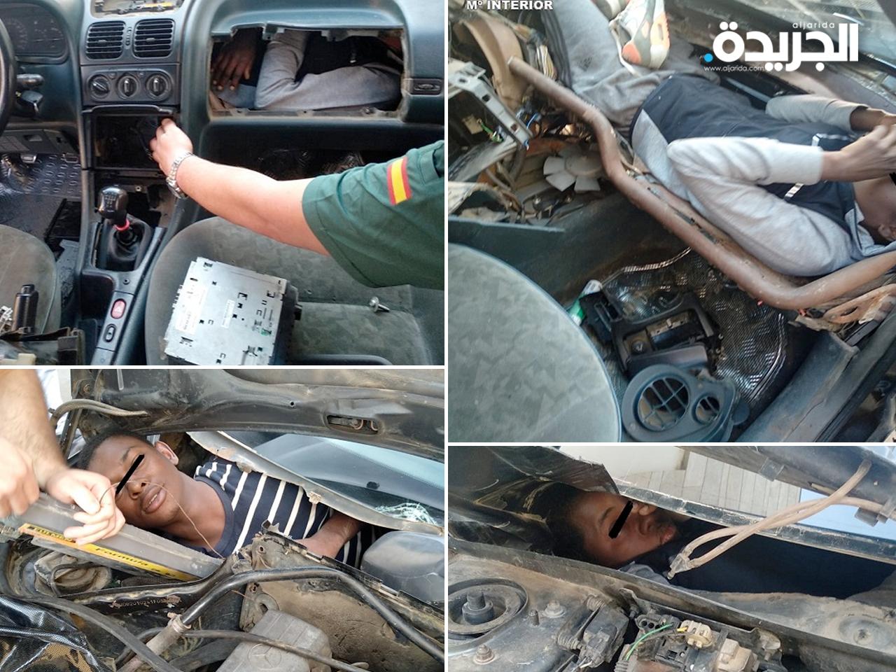 أوقفت السلطات الإسبانية 4 سيارات قرب ميناء مليلة، بينما كانت تحاول تهريب عدد من الأشخاص إلى داخل البلاد بطريقة «جهنمية».وبحسب الصور التي نشرتها قوات الدفاع المدني الإسباني، فإن المتسللين كانوا مختبئين داخل محرك السيارة، الأمر الذي أدى إلى تعرضهم لمخاطر مختلفة مثل الاختناق والغثيان وآلام المفاصل، حسبما ذكر موقع الدفاع المدني الإسباني.ووفقاً للسلطات الإسبانية، فقد تم إيقاف 4 أشخاص من الأفارقة، ومن بينهم فتاة في الخامسة عشر من عمرها، مشيرة إلى أنه سيتم تقديمهم للمحاكمة.