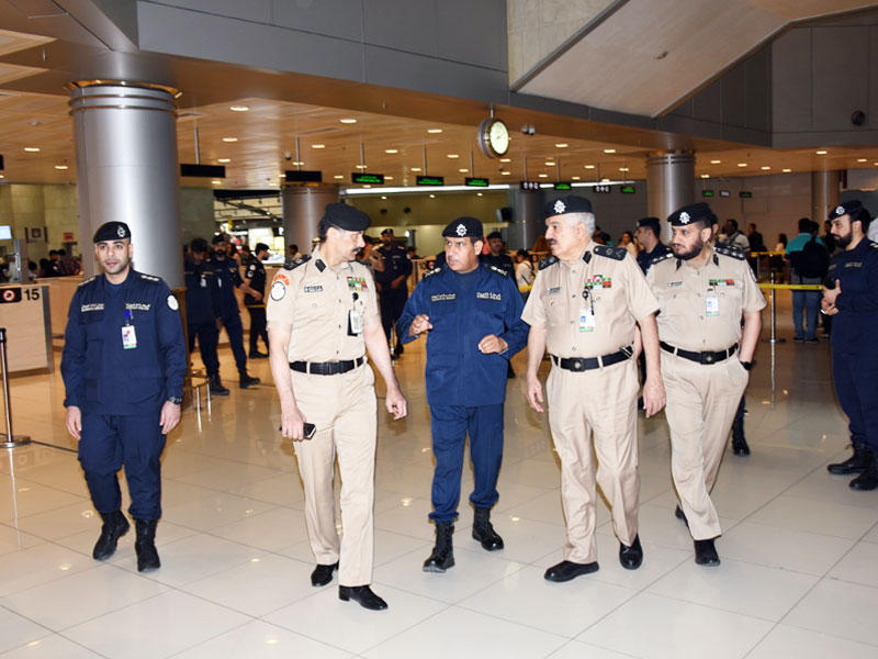 ثم قام وكيل الداخلية بجولة تفقدية بمطار الكويت الدولي مبنى الركاب (T1) و(T4) و(T5)، وكان في استقباله وكيل وزارة الداخلية المساعد لشؤون أمن المنافذ اللواء منصور العوضي، والمدير العام للإدارة العامة لأمن المطار اللواء وليد الصالح، وعدد من قيادات أمن المنافذ.واطلع النهام على آلية سير العمل في كاونتر جوازات المغادرين والقادمين بالمطار، ووقف على آخر المستجدات لاستقبال جميع زوار دولة الكويت، وتوفير كل السبل لتسهيل الإجراءات وتذليل كل العقبات للقادمين والمغادرين، كما تفقد غرفة عمليات المطار، واستمع إلى شرح موجز عن مجريات العمل بها.وأعرب النهام عن تقديره لجهود رجال الأمن العاملين بمطار الكويت الدولي، وأثنى على كفاءتهم وقدرتهم على تنفيذ المهام والواجبات المنوطة بهم ضمن المنظومة الأمنية التي وضعتها "الداخلية".