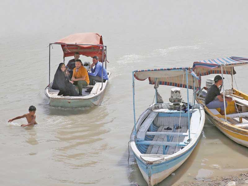 عراقيون يعبرون نهر دجلة على متن قارب لتجنب اختناقات المرور في بغداد أمس (أ ف ب)