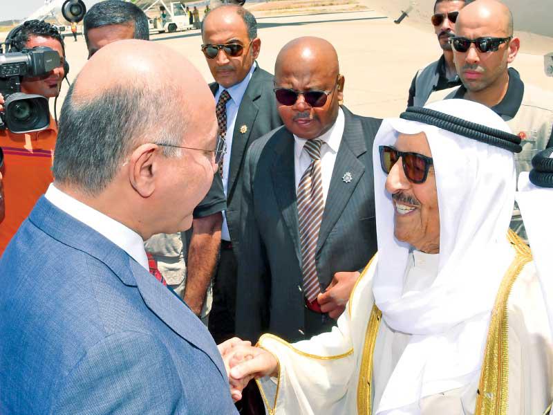 وفي بيان للرئاسة العراقية، قال الرئيس صالح إن العلاقات بين البلدين قطعت أشواطاً كبيرة إلى الأمام بفضل حكمة ورغبة القيادتين في تجاوز مخلفات الماضي، معرباً عن تمنياته بأن تكون زيارة سمو الأمير «فرصة طيبة لطي صفحة الماضي، وبدء صفحة علاقات بناءة بين الجارين الشقيقين».وأكد أن «هناك رغبة جادة لبناء علاقات متطورة مع الجيران عموماً، والكويت خصوصاً، بما يخدم المصالح المشتركة للشعبين»، مضيفاً أن بغداد تنظر إلى طبيعة الأزمة الحالية في المنطقة بمنظار واسع، وتسعى إلى تحقيق توافق إقليمي شامل على قاعدة الحوار والجيرة الحسنة بين الدول.وفي تغريدة له ضمن أجواء الزيارة، خاطب صالح صاحب السمو: «زيارتك لبغداد هي زيارة لبيتك، وأنت بين إخوتك وأهلك».وأضاف الرئيس العراقي: «ليس بالسياسة وحدها تبنى البلدان، بل بالمحبة أيضاً التي حرصت دائماً على إبدائها، من أجل مستقبل مشرق للشعبين الشقيقين، سنعزز تعاوننا من أجل الاستقرار والإعمار».