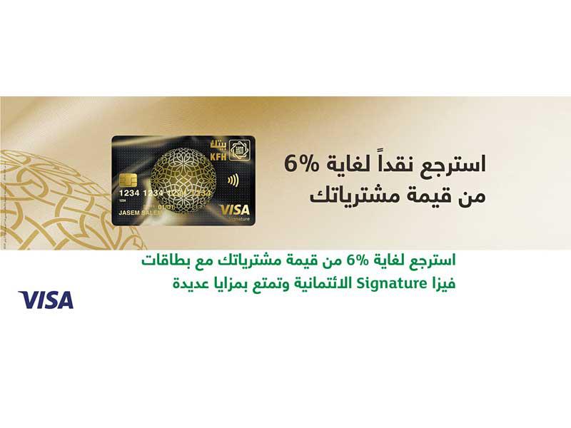 في إطار الاهتمام بالعميل والحرص على مكافأته، والاستمرار في تقديم وتعزيز باقة متنوعة من الخدمات والمنتجات المبتكرة التي تلبي تطلعات العملاء وتعزز مكانة البنك، يوفر بيت التمويل الكويتي (بيتك) بطاقة فيزا Signature الائتمانية، التي تتمتع بمميزات متنوعة، أهمها ميزة الاسترجاع النقدي حتى 6% من قيمة المشتريات شهريا، حسب الشروط والأحكام الموضحة على موقع «بيتك» الالكتروني.ومع قدوم موسم السفر والتسوق، بإمكان حاملي هذه البطاقة الاستمتاع بسفرهم وتسوقهم، من خلال هذه البطاقة التي توفر لهم باقة فريدة من المميزات للتمتع بتجربة عالم من المزايا الحصرية، والرفاهية والأمان عند استخدامها، هذه المزايا تم اختيارها بكل عناية ودقة لتلائم نمط الحياة الخاصة للعميل.