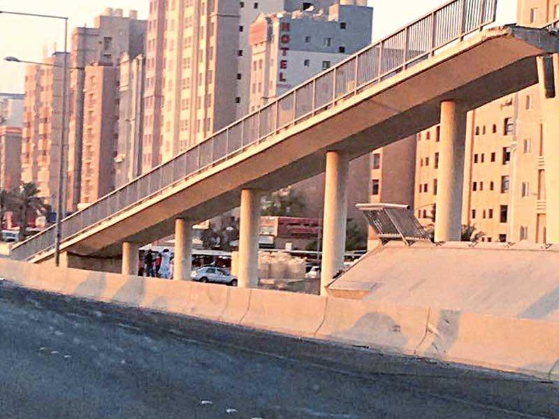حث أمين سر جمعية المهندسين فهد العتيبي الهيئة العامة للطرق ووزارة الأشغال العامة على الإسراع في إعادة بناء جسر المشاة الواصل بين منطقتي الرقة وأبوحليفة (مقابل بنزين الرقة) فوق طريق الفحيحيل السريع، لافتا إلى أن الجسر منذ أكثر من عام تعرض لاصطدام شاحنة وانهيار جزء منه، ولم تبادر الجهات المعنية بإصلاحه. وأوضح العتيبي أن عدم إصلاح الجسر المنهار تسبب في كثير من الحوادث والإصابات، وأن الاستمرار في عدم اصلاحه سيؤدي الى مزيد من الخسائر المالية والبشرية، مضيفا أن المشاة مضطرون إلى المخاطرة باجتياز الطريق السريع، مما يؤدي الى حوادث اصطدام، نظرا لكثرة التوقف المفاجئ للمركبات، أو تهدئة السرعة خلال عبور المشاة.