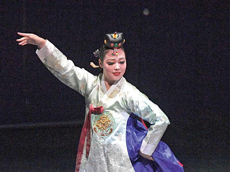 قدمت الفرقة الكورية الجنوبية 12 لوحة استعراضية معبرة عن الفنون في بلادها، في حفل لها في مركز «عبد الله السالم الثقافي».