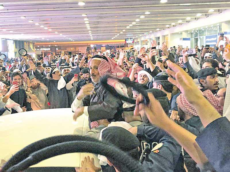 • مازالت متحفظاً كثيراً... حجم تضحيات الفجي مازالت في نفوس أهل الكويت، فماذا يقول أبوخالد لمحبيه الذين احتفوا بعودته إلى أرض الوطن؟ من أعماق قلبي أشكر كل شخص تشرفت باستقباله لي بعد غياب طويل عن أرض الوطن الحبيبة، ولا أخفيك أنه قد دمعت عيناي بقدوم إخواني والمحبين من أبناء الوطن، فكانت لحظات شعرت فيها بقيمة كفاحنا من أجل الوطن ووفائنا له.• اعتذرت عن تولي الجبهة الوطنية بعد التحرير خصوصا أنك كنت محل اتفاق جميع اطياف المجتمع، وتمت تزكيتك لتولي قيادتها، فما سر رفضك لها؟الهدف ان يصبح تجمعا وطنيا هدفه دعم القيادة السياسية بعد التحرير، فكان هناك نوع من التحفظ بشأن توقيته بأن هذا التجمع قد يشكل رأيا آخر، وتصبح الأمور سلبية اكثر مما قد تكون إيجابية، خصوصا اننا كنا ارتأينا ان نكون داعمين للحكومة ووطننا في بناء الكويت الجديدة عبر عودة الحياة البرلمانية ومشاركة الشعب في النهضة الجديدة.• ماذا يحمل محمد الفجي في قلبه وفي عقله من أمور يستطيع بها أن يخدم بلده ويساهم في بنائه الداخلي؟ما يحمله محمد الفجي في قلبه وفي عقله هو ما يحمله كل مواطن كويتي على هذه الأرض الطيبة، وهو حب الوطن والانتماء له والعمل بإخلاص في سبيله.مكانة الكويت