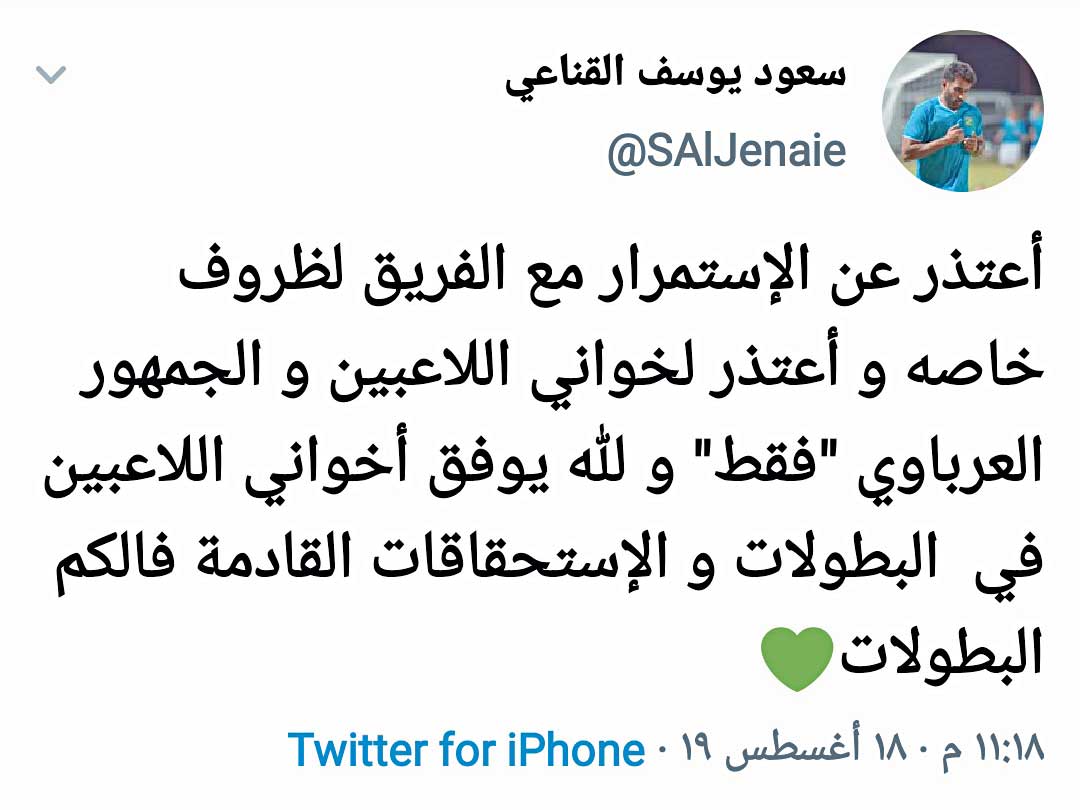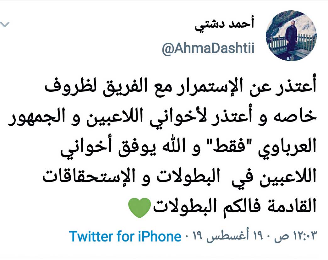 بات الفريق الاول لكرة القدم بالنادي العربي أمام أزمة حقيقية في مركز حراسة المرمى، بعد الاعتذار المفاجئ للحارسين الثاني والثالث سعود القناعي وأحمد دشتي عن عدم الاستمرار مع الفريق، مؤكدين في رسالة موحدة نشراها عبر موقع التواصل الاجتماعي "تويتر" أن هذا الابتعاد جاء لظروف خاصة.وتقدم اللاعبان بالشكر لزملائهما اللاعبين والجماهير العرباوية فقط، دون التطرق لكل من الجهازين الفني والاداري وحتى أعضاء مجلس الادارة.
