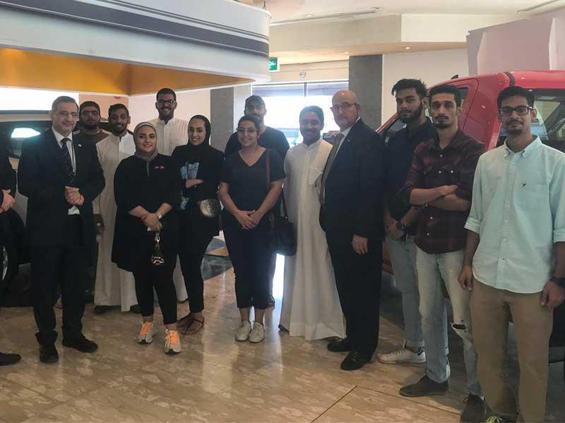 وفي إطار عملي للتعرف على نقاط التميز التسويقي، قام الطلبة بتفقد الموديلات الجديدة لسيارات شيفروليه ومقارنتها بمنافساتها، وأهمها سيارة سيلفرادو الجديدة وسيارات الدفع الرباعي بليزر الجديدة. واستمع الحضور لتوصيات ومداخلات طلبة الكلية فيما يتعلق بالتحليل الاستراتيجي للعوامل المؤثرة وشرائح السوق في الكويت.