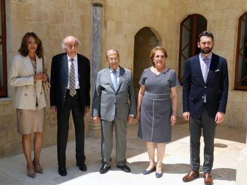 استقبل الرئيس اللبناني ميشال عون في قصر «بيت الدين» رئيس الحزب التقدمي الاشتراكي النائب السابق وليد جنبلاط برفقة عقيلته نورا ونجله رئيس اللقاء الديمقراطي النائب تيمور جنبلاط. وقال رئيس «الاشتراكي» فور وصوله إلى قصر بيت الدين إنه «هنا للترحيب بالرئيس عون». واستبقى عون جنبلاط وعائلته إلى مائدة غداء عائلي ضمّت وزير الخارجية جبران باسيل، وهو أيضاً صهر الرئيس.