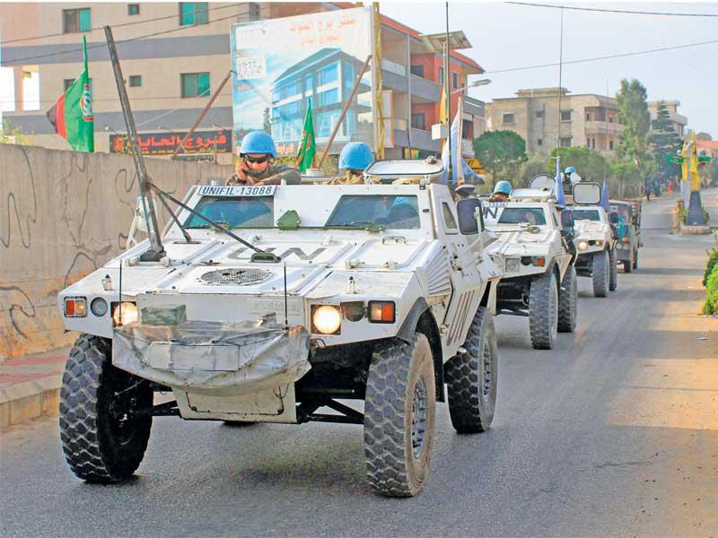 نفذت عناصر ملثمة تابعة لحزب الله حملة مداهمات واعتقالات واسعة في الضاحية الجنوبية. وأشارت مصادر خاصة لموقع "القوات" الإلكتروني، إلى أن الحملة شملت مسؤولين وعناصر تابعة للحزب لها علاقة بهجوم الطائرتين المسيرتين، مضيفة: "يبدو من طريقة المداهمات أن الحزب اكتشف خرقاً أمنياً كبيراً في صفوفه". وكشفت مصادر "القوات" إلى أن بعض المعتقلين شاركوا في الحرب الدائرة في سورية وعادوا إلى لبنان.وفي الصورة دورية لـ«اليونيفيل» في قرية كفركلا الحدودية مع اسرائيل بالجنوب اللبناني أمس