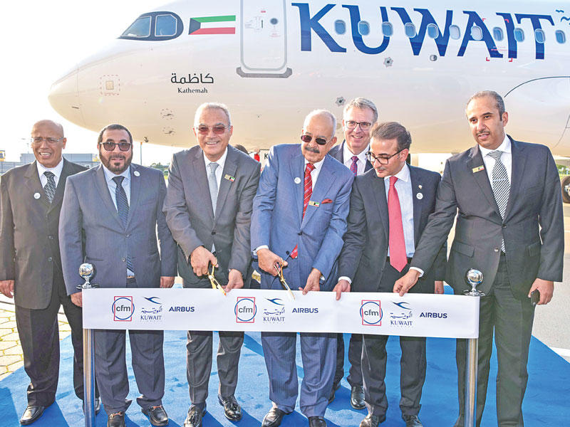 وأضاف: "لعل ما يزيد من سعادتنا جميعا تزامن هذا الحدث مع ما زفته لنا الأخبار بتعافي صاحب السمو أمير البلاد الشيخ صباح الأحمد، قائد نهضتنا وراعي مسيرتنا، من العارض الذي تعرض له سموه، ونقول له خطاك السو يا صاحب السمو وحفظك الله ذخرا للوطن والشعب الملتفّ من حولك أبا وقائدا وأميرا".وأوضح أن "طائرتنا أطلقنا عليها اسم كاظمة، وهو ذلك الموقع المهم على أرض الكويت، والذي يكتسب أهمية تاريخية كبيرة في التاريخين العربي والإسلامي، فضلا عن انه الاسم الذي حملته أول طائرة اقتنتها الخطوط الجوية الكويتية، حين تأسست قبل 65 عاما، وكانت من طراز داكوتا (دي سي 3)".وبين أن انضمام 28 طائرة حتى عام 2026 من الطرازات المتقدمة والحديثة إلى عشر طائرات من طراز بوينغ 777، العاملة أصلا ضمن أسطولنا الحالي، يتماهى مع روح الريادة التي يقوم عليها احتفالنا هذا العام ببلوغ 65 عاما من الريادة، منذ تأسيس هذه المؤسسة العريقة.وذكر أن "إجمالي أسطولنا عام 2026 سيبلغ 38 طائرة قابلة للزيادة كلما استدعت الحاجة ذلك، من واقع التوسع في حركة الركاب المنقولة على متن طائراتنا، وكذلك التوسع في شبكة التشغيل مستقبلا".وقال الجاسم: "نحن نشهد قفزات واسعة بأعداد الركاب المنقولين، ونتوقع أن تقارب الخمسة ملايين راكب مع نهاية عامنا هذا، بزيادة نحو نصف مليون راكب عن عام 2018 و900 ألف راكب عن عام 2017".وأكد أن هذه التحديثات في الأسطول تتجاوب مع أحد أهم الأهداف والمبادئ التي رسمها مجلس الإدارة للشركة ضمن خطط عمله المعتمدة، وهو هدف خدمة العملاء والوصول بها أعلى الدرجات والعمل على ربط الوجهات على شبكة الخطوط، من خلال أكفأ الطائرات المنتجة عالميا بمختلف طرازاتها وإمكانيات تشغيلها.وأعرب الجاسم عن شكره لشركة إيرباص "على جهودها معنا لتحقيق التعليم الذي شابه تأخير ليس بالقصير، وكنا نتمنى الالتزام بالمواعيد الأصلية للتسليم، ولكن الظروف القاهرة التي أخبرنا عنها المصنع استدعت التأخير"، مؤكدا التطلع إلى المزيد من التعاون مع الشركة مستقبلا، "من أجل تحقيق أهدافنا المشتركة في تطوير أسطولنا وعملياتنا التشغيلية".من جهته، أعرب رئيس الطائرات التجاري في "إيرباص إفريقيا والشرق الأوسط" فؤاد العطار، في كلمة مماثلة عن فخره واعتزازه بتسلم "الكويتية" طائرتها الجديدة، مما سيعزز التعاون الثنائي بين الشركتين بشكل أوسع، مشيدا بالعلاقات التاريخية التي تربط بين "إيرباص" و"الكويتية". وقال العطار إن هذا "يأتي بالتزامن مع احتفالات الخطوط الجوية الكويتية بالذكرى الـ 65 على تأسيسها، وهو يمثل خطوة مهمة نحو تحقيق خططها الطموحة والرامية إلى تطوير وتحديث أسطولها من الطائرات".وأوضح أن هذا التسليم يأتي كذلك في أعقاب اتفاقية الشراء التي أبرمتها الناقلة الكويتية مع الشركة في عام 2014، موضحاً أن "إيرباص" ستسعى إلى تسليم "الكويتية" بقية الطائرات المتفق عليها.وذكر أن طائرة "إيه 320 نيو" انطلقت في ديسمبر 2010 وتم تسليم أول طائرة من هذا الطراز في يناير 2016 لإحدى شركات الطيران، موضحاً أن "إيرباص" تعمل حاليا على إنجاز نحو 5724 طلباً من طراز هذه الطائرة.وأكد العطار أن الطائرة تعد ركيزة أساسية لأسطول "الكويتية" من الطائرات أحادية الممر، ومن المقرر إدخال 15 طائرة من هذا الطراز خلال السنوات المقبلة، لمواصلة سجل النجاحات الذي حققته طائرات الأسطول الحالي المكون من سبع طائرات (إيه 320)، مضيفا أن الطائرة تتميز بسلاسة عمليات الانتقال إليها بالنسبة إلى الطيارين وطواقم الطائرات والفرق الفنية.