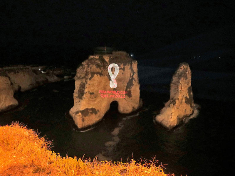 قبل أكثر من ثلاثة أعوام على انطلاقها، كشفت قطر، أمس، شعار نهائيات كأس العالم في كرة القدم 2022 التي ستستضيفها، بعرض في الدوحة وحول العالم لتصميم يستوحي رمزية عربية.وعند الساعة 20:22 بالتوقيت المحلي (17:22 ت غ)، عرض الشعار الأبيض اللون على خلفية عنابية، على معالم مختلفة في العاصمة القطرية ومدن عالمية عدة منها الكويت، وبغداد، وبيروت، وباريس، ومدريد، وبوينوس ايرس، في محطة إضافية ضمن مسار قطري بدأ عام 2010 (تاريخ منح البلاد الاستضافة)، على أن يتوج في شتاء 2022 بأول كأس عالم في الشرق الأوسط وشمال إفريقيا.وكانت الاحتفالية الأكبر في الدوحة، حيث عرض الشعار على معالم عدة حديثة وتاريخية في العاصمة، منها مبنى الأرشيف الوطني في منطقة مشيرب، وسوق واقف وكتارا، في احتفاليات تابعها مئات من المواطنين والمقيمين، وشملت عروضا تقليدية شارك فيها فرسان على أحصنة.
