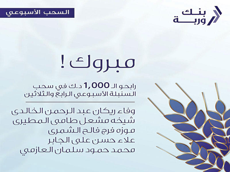 «وربة»: 5 فائزين في سحوبات «السنبلة» الأسبوعية