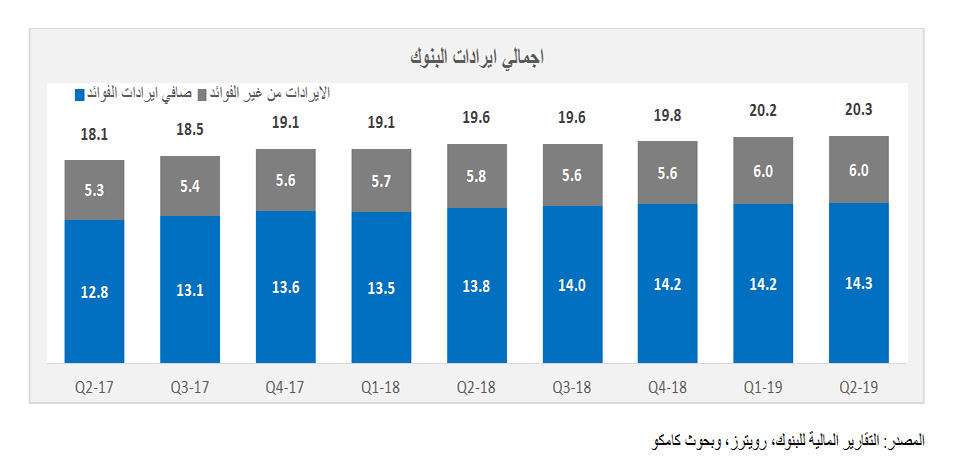 من جهة أخرى، وحسب تقرير صادر عن شركة كامكو للاستثمار، نمت ودائع العملاء بنسبة 2.3 في المئة على أساس ربع سنوي فيما يعد أعلى معدل نمو على مدار الأرباع الثمانية الماضية. ونتيجة لذلك، بلغت نسبة القروض إلى الودائع 80.4 في المئة، مسجلة بذلك أدنى معدلاتها على مدى الأرباع التسعة الماضية، واستمرت ما دون مستوى المعايير الدولية. وتشير تلك النسبة المنخفضة أيضاً إلى القدرات الإضافية المتاحة أمام البنوك الخليجية لتمويل مشاريع البنية التحتية المستقبلية في المنطقة ودعم نمو القطاع الخاص، لا سيما القطاع غير النفطي.أما على صعيد الربحية، فقد شهد صافي إيرادات الفائدة نمواً هامشياً بنسبة 0.6 في المئة على أساس ربع سنوي، ليصل إلى 14.3 مليار دولار خلال الربع الثاني من عام 2019 بعد أن شهد تراجعاً هامشياً خلال الربع الأول من عام 2019. من جهة أخرى، ظلت الإيرادات من غير الفائدة ثابتة عند مستوى 6.0 مليارات دولار مقارنة بالفترة المماثلة من العام الماضي، وهو الأمر الذي نتج عنه بلوغ اجمالي إيرادات البنوك 20.3 مليار دولار في الربع الثاني من عام 2019، بنمو بلغت نسبته 0.5 في المئة. وأدى الارتفاع النسبي للأصول المدرة للدخل مقارنة بصافي إيرادات الفائدة إلى انخفاض هامشي في صافي هامش الفائدة من 3.16 في المئة في الربع الأول من عام 2019 إلى 3.13 في المئة في الربع الثاني من عام 2019وسجلت السعودية أعلى معدل صافي هامش الفائدة على مستوى دول مجلس التعاون الخليجي بارتفاع بلغت نسبته 3.7 في المئة، حيث أظهرت المملكة تحسنا ثابتا في معايير الربحية الرئيسية على مدى العشرة أرباع الماضية. وقامت المملكة بمواءمة سياسة أسعار الفائدة الرئيسية الخاصة بها بما يتماشى مع أسعار الفائدة الأميركية من أجل الحفاظ على ربط عملتها بالدولار الأميركي. ونتج عن ذلك إقرار البنك المركزي السعودي لنفس الزيادات التي طبقتها الولايات المتحدة على أسعار الفائدة الأميركية منذ العام الماضي، وهو الأمر الذي أدى إلى ارتفاع صافي هامش الفائدة.