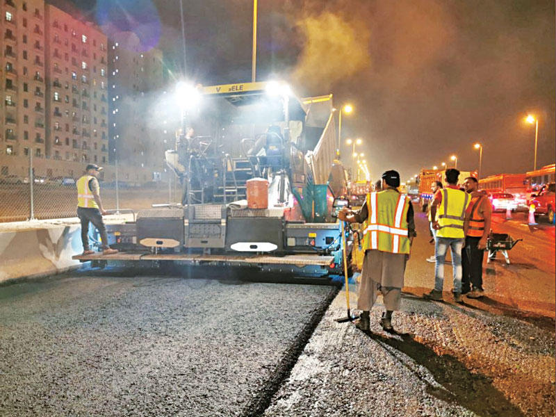 «الأشغال»: أعمال فرش الأسفلت متواصلة بالعاصمة والجهراء وحولي